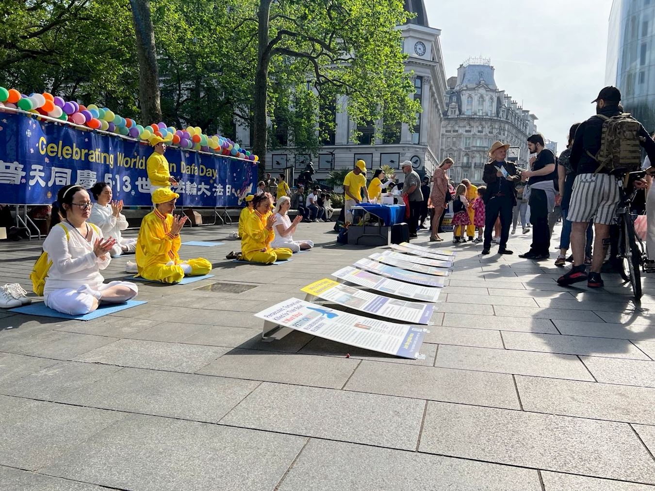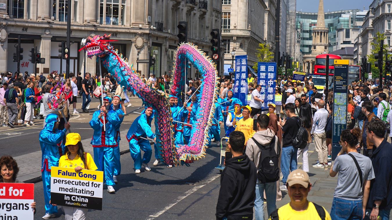【明慧网二零二四年五月十三日】(明慧英国记者站)二零二四年五月十一日,英国法轮功学员在伦敦市中心举行盛大游行集会,庆祝第二十五届世界法轮大法日,暨法轮大法弘传世界三十二周年,并恭祝师父生日快乐。