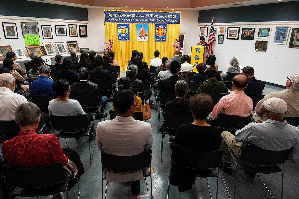 ![]() 图1:师尊华诞暨世界法轮大法日来临之际,二零二四年五月四日,加州圣地亚哥举行法轮大法修炼心得交流会。 |