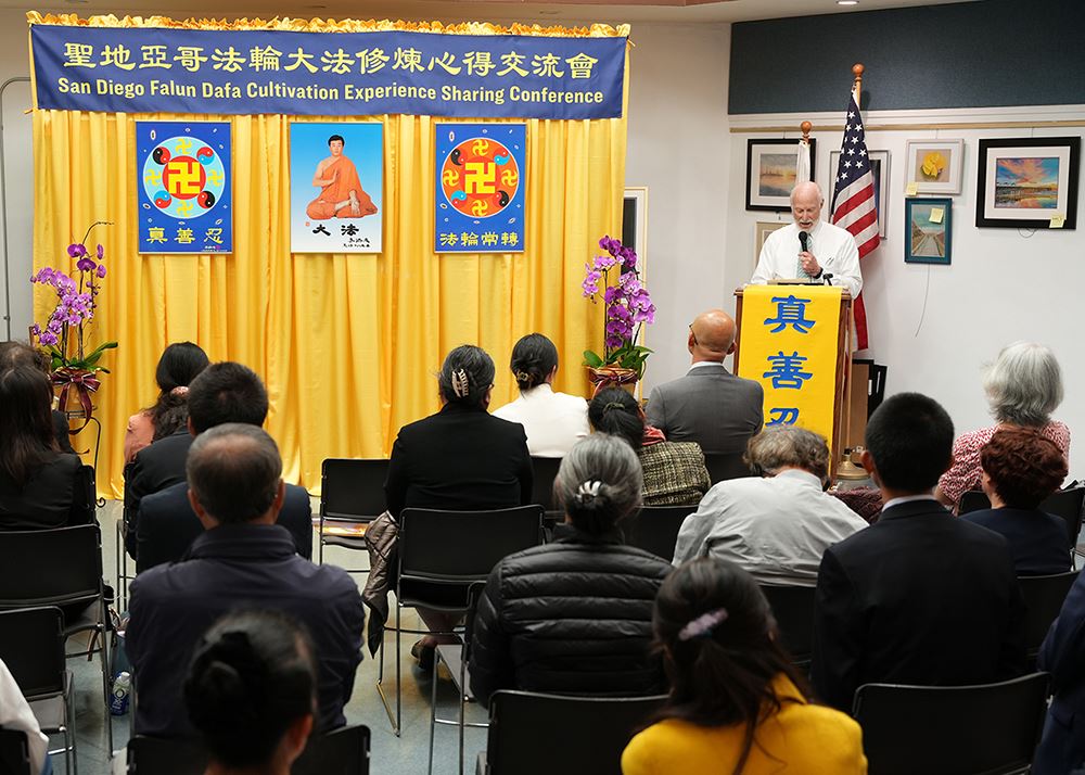 ![]() 图2~3:二零二四年五月四日,加州圣地亚哥大法弟子在修炼心得交流会上发言。 |