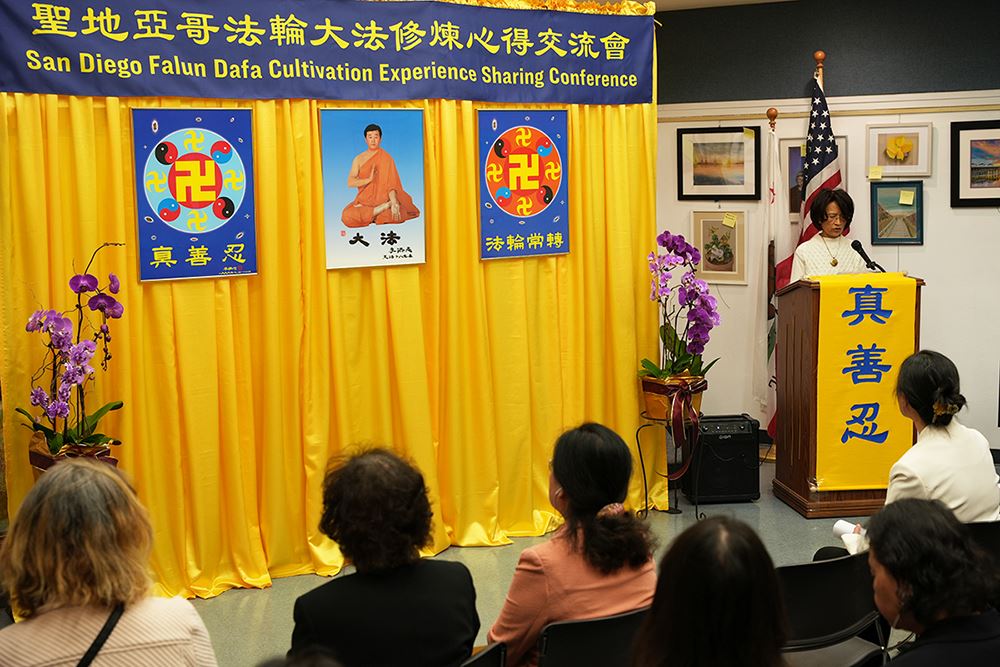 法轮功学员苏女士分享了来到海外宽松的环境中,如何不放松自己,从师父讲法中悟到,要到圣地亚哥景点给大陆来的游客讲真相的重要性。