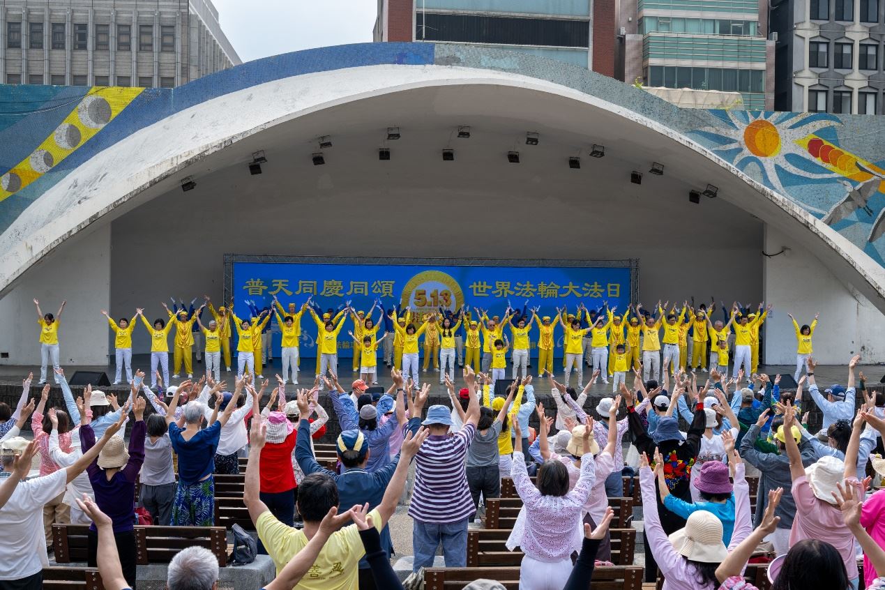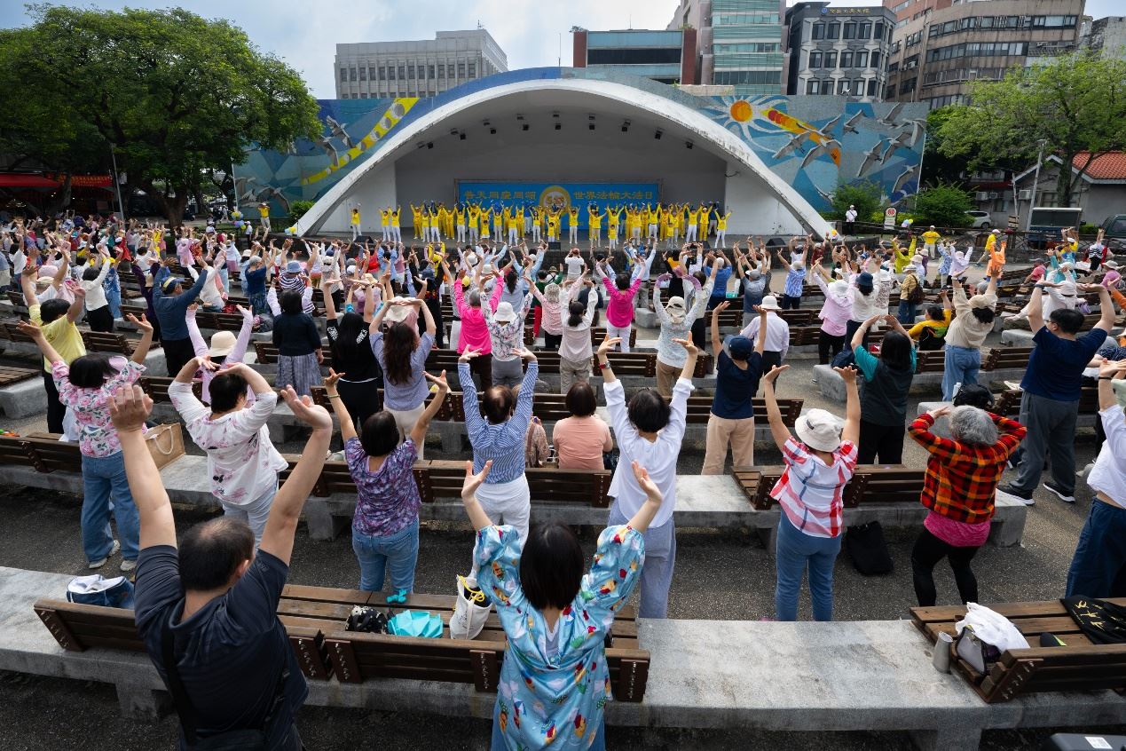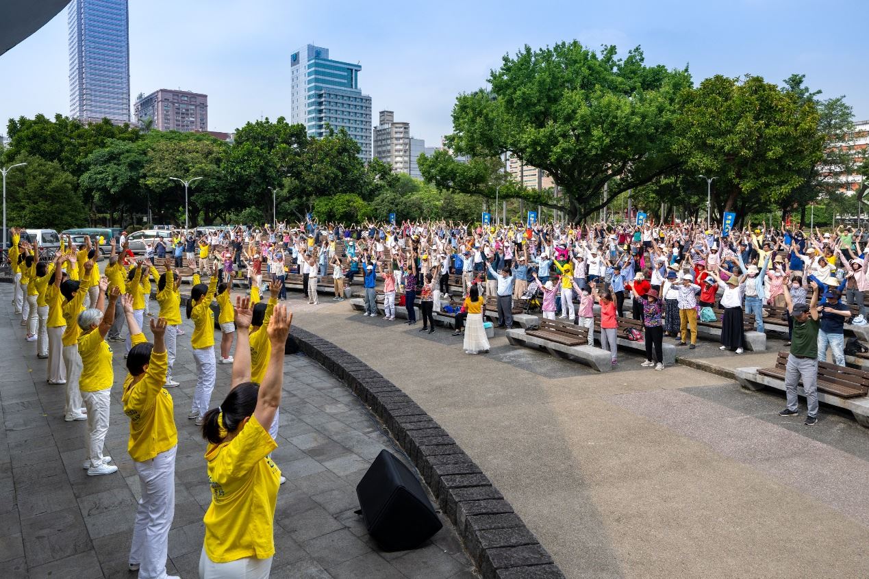 '图10:二零二四年五月十一日下午,台北约八百位法轮功学员于二二八和平公园恭祝李洪志师父生日快乐。'