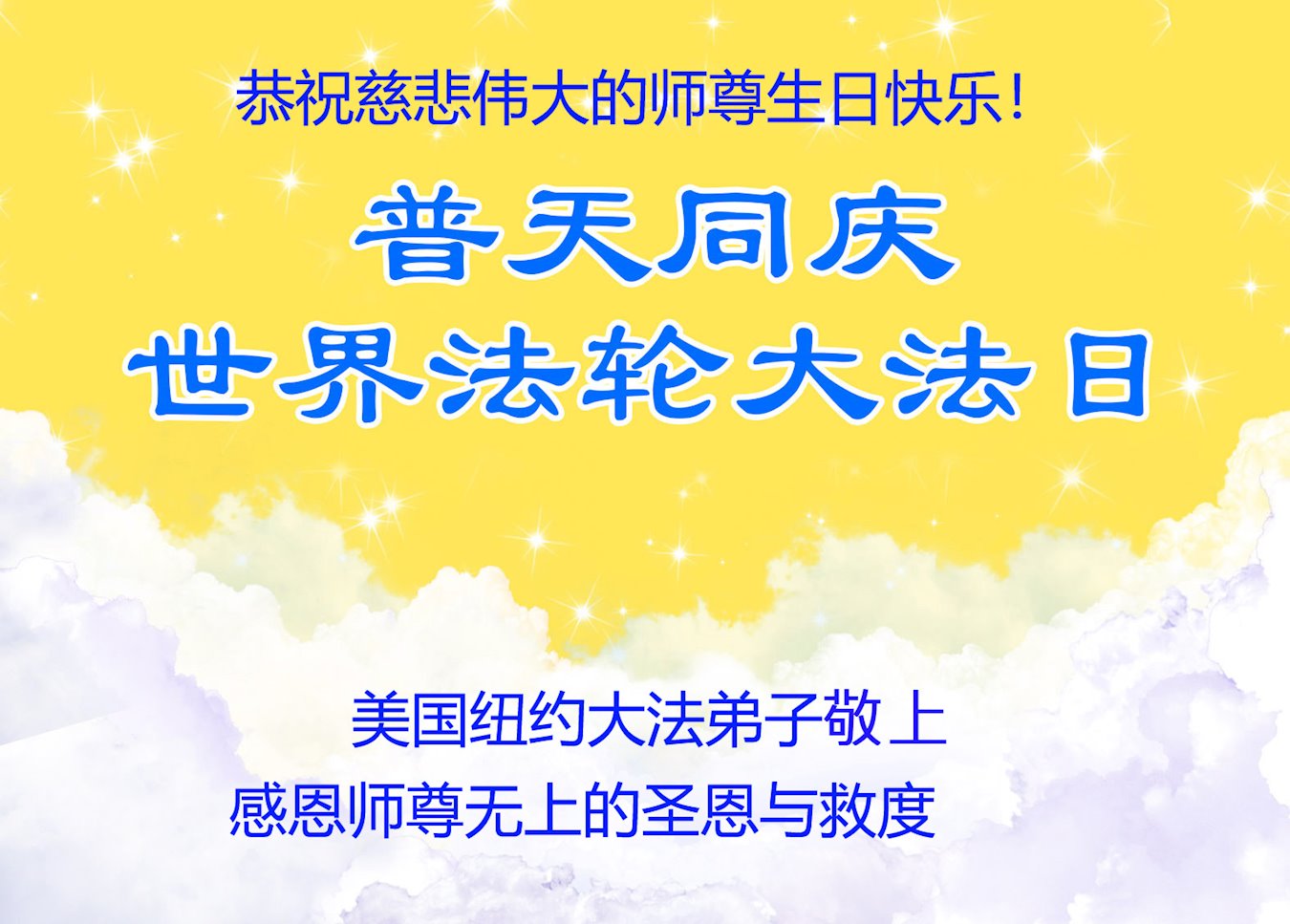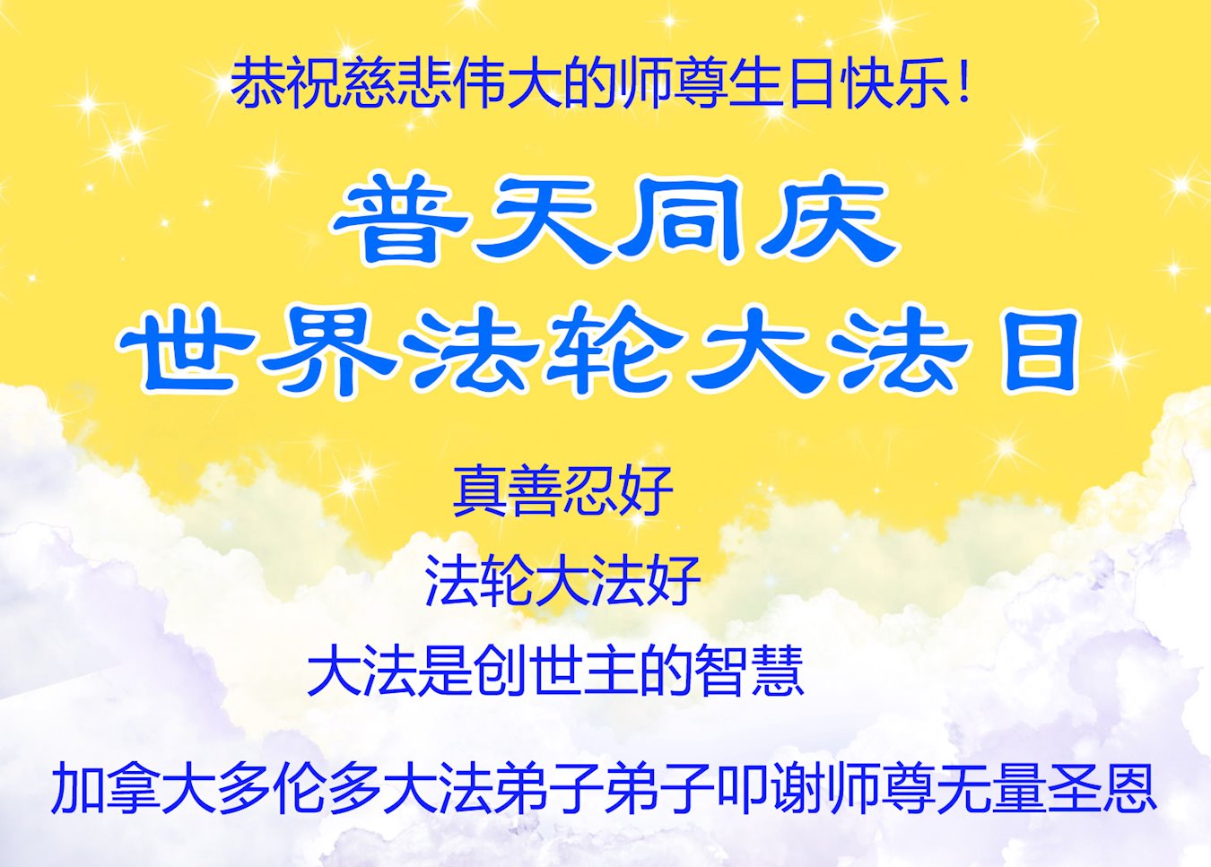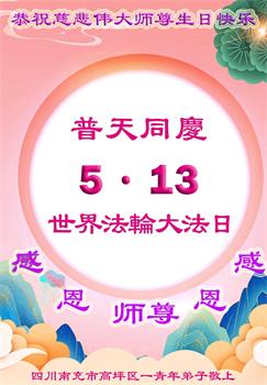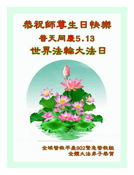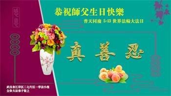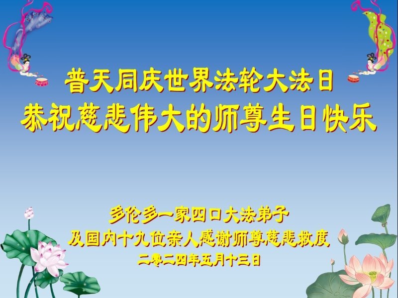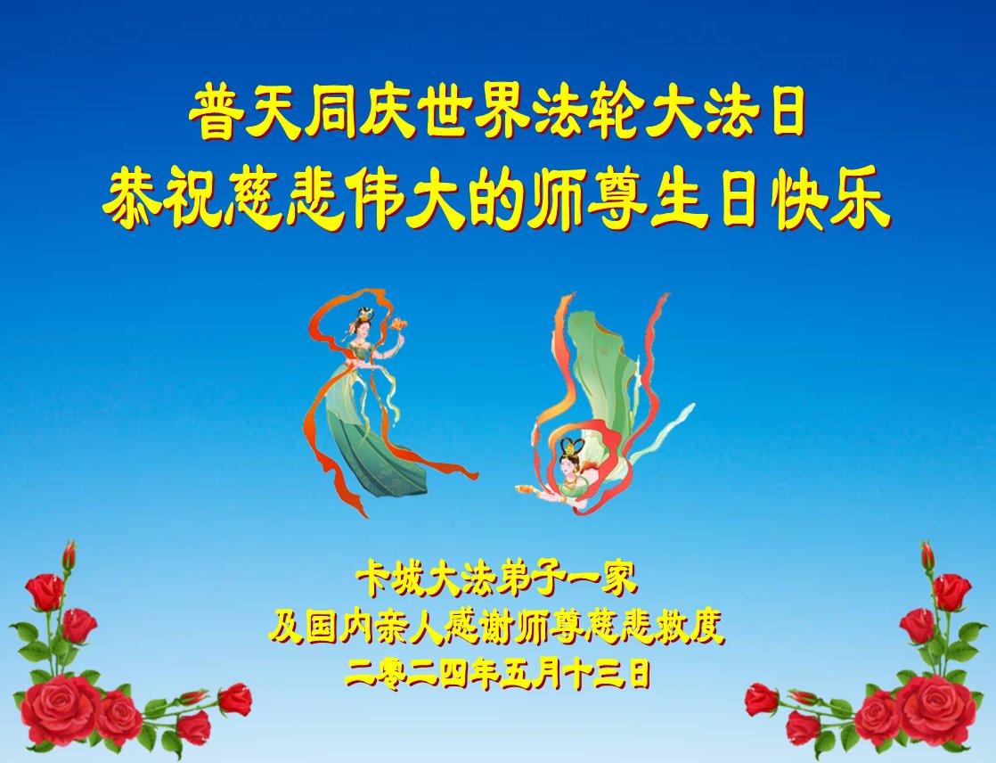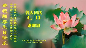 普天同庆世界法轮大法日!衷心恭祝慈悲伟大的师尊生日快乐!