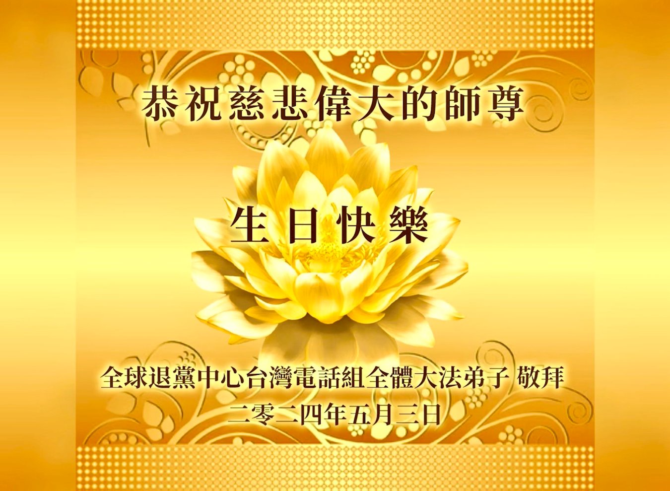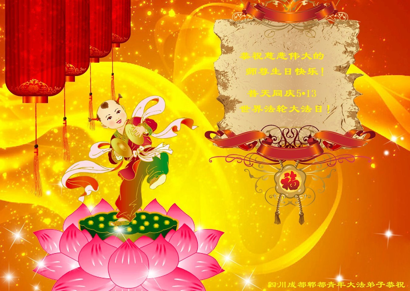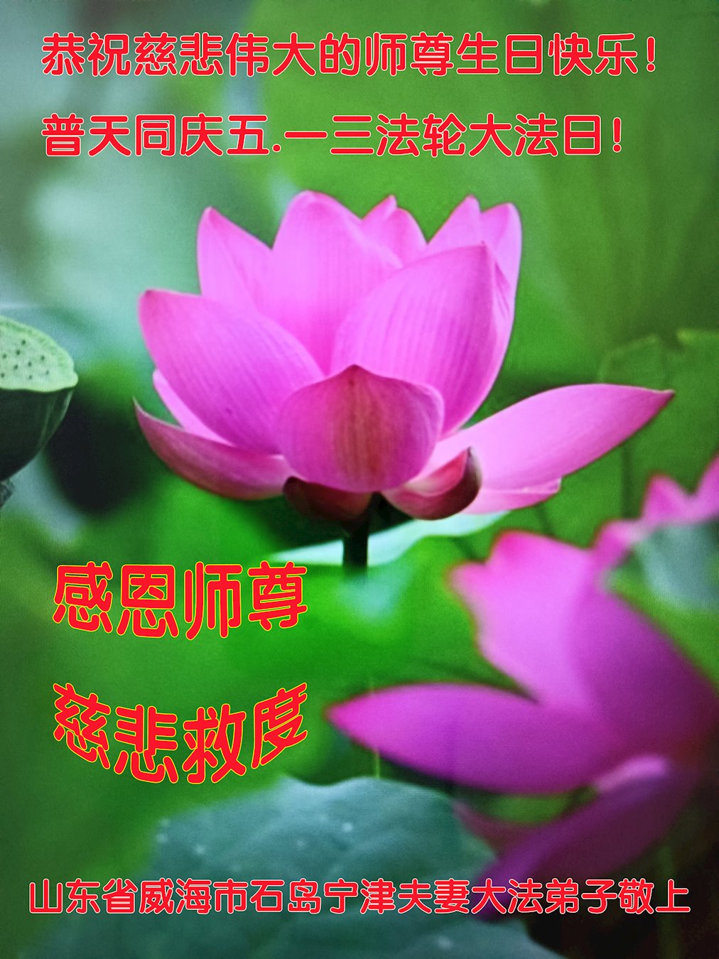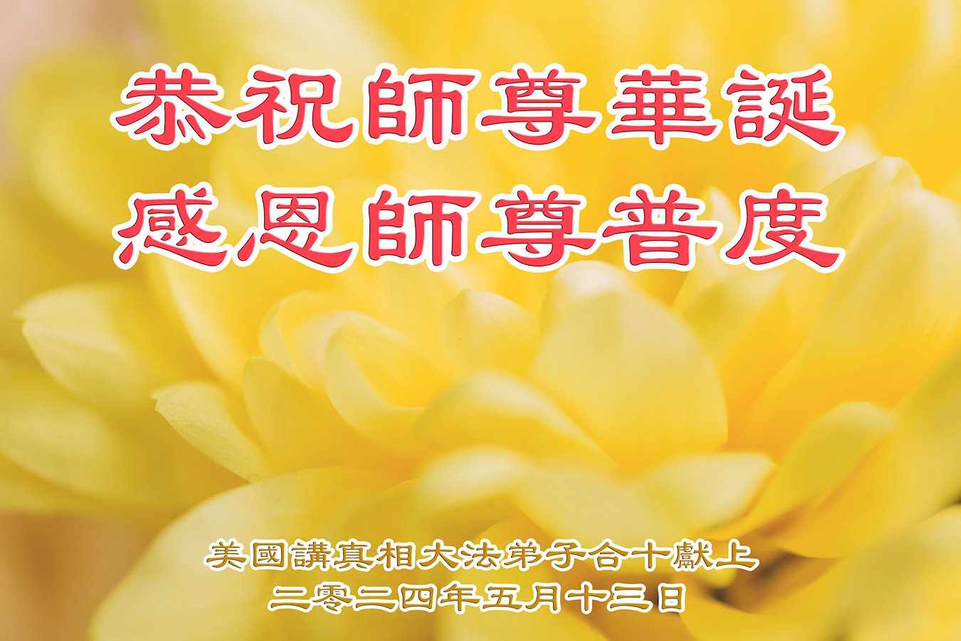 普天同庆世界法轮大法日!衷心恭祝慈悲伟大的师尊生日快乐!