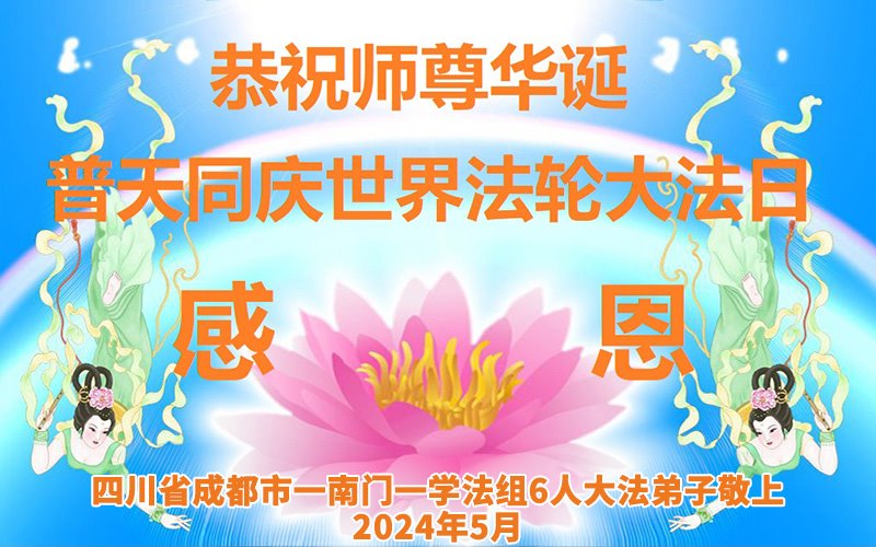 今天,当天地同颂师恩,同赞大法之时,我们向师父表达最诚挚的感恩,并承诺精進修炼,用最强大的正念正行证实法,这将是对法最好的致敬!