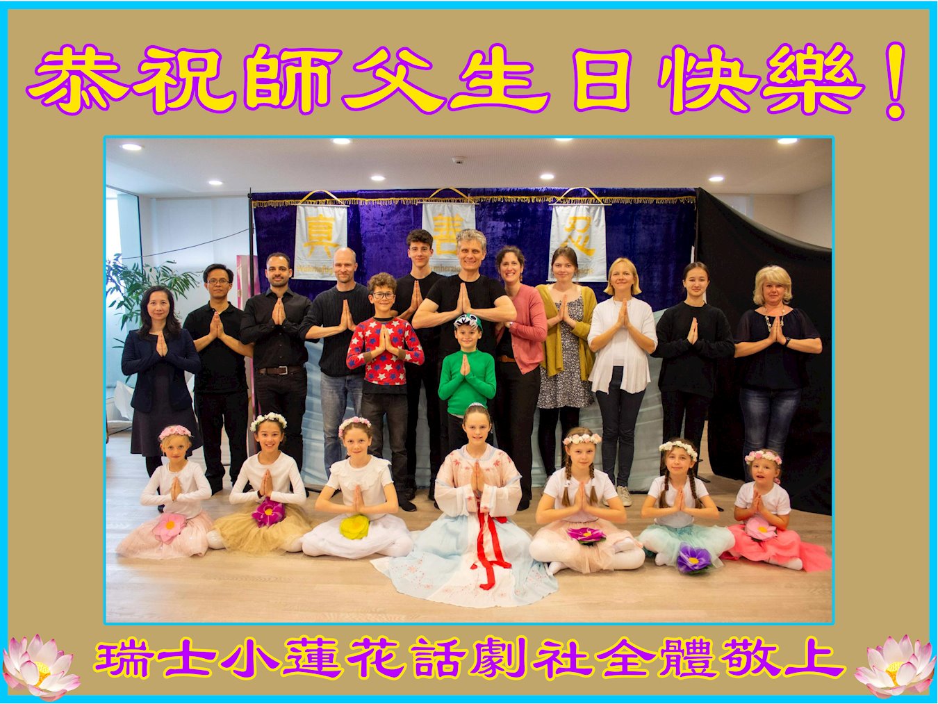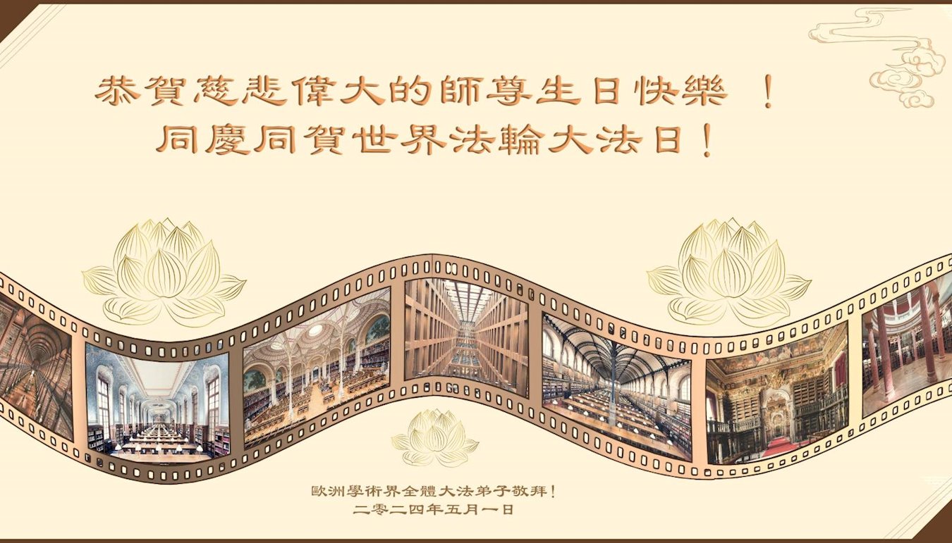 在欧洲各国(奥地利、比利时、保加利亚、斯洛伐克、克罗地亚、赛普洛斯、捷克、丹麦、芬兰、法国、德国、希腊、爱尔兰、以色列、意大利、拉脱维亚、立陶宛、卢森堡、马耳他、挪威、葡萄牙、波兰、瑞士、罗马尼亚、斯洛文尼亚、西班牙、瑞典)大学的学术界工作的大法弟子,恭贺慈悲伟大的师尊生日快乐!感恩师尊的慈悲救度!同贺同庆世界法轮大法日!