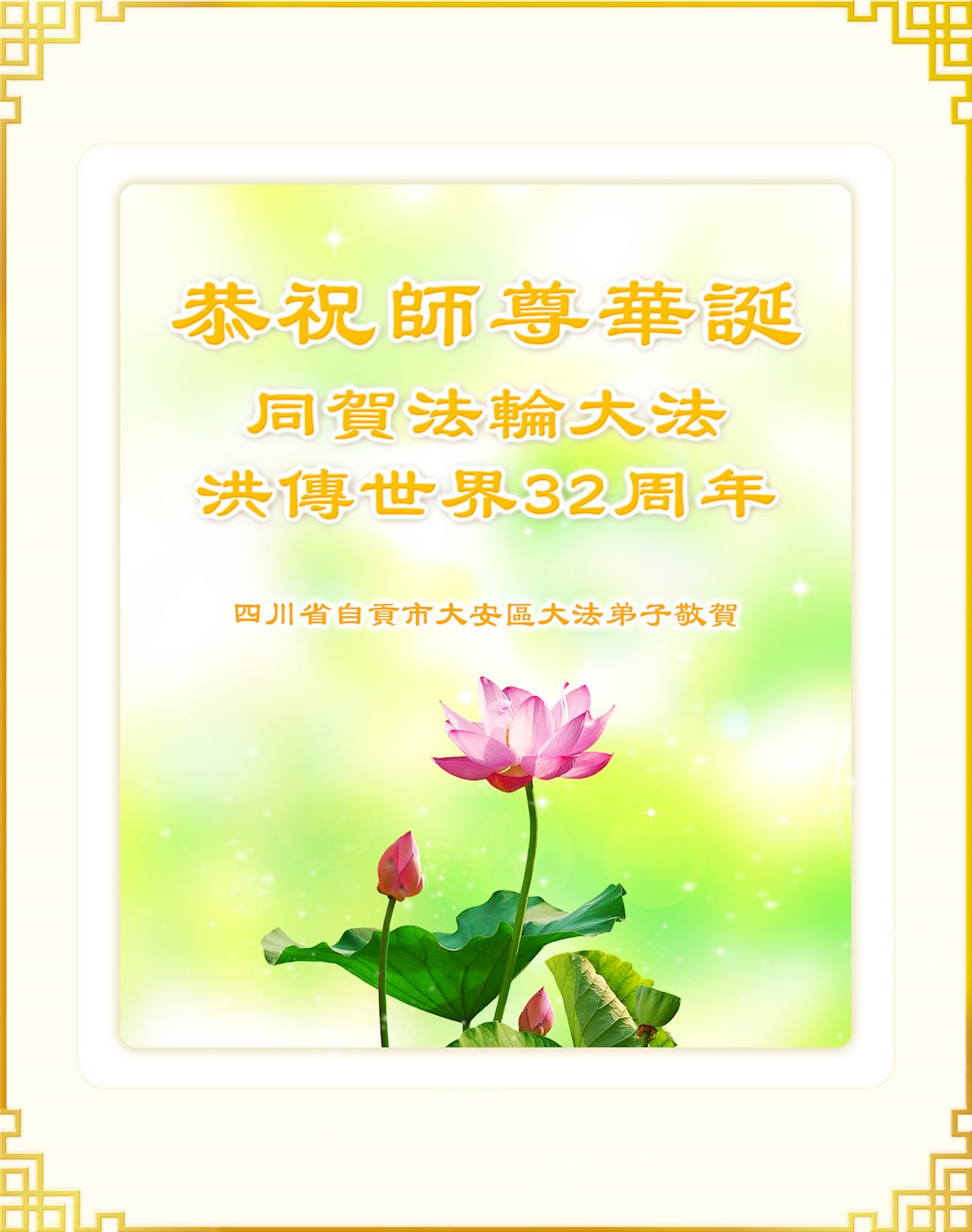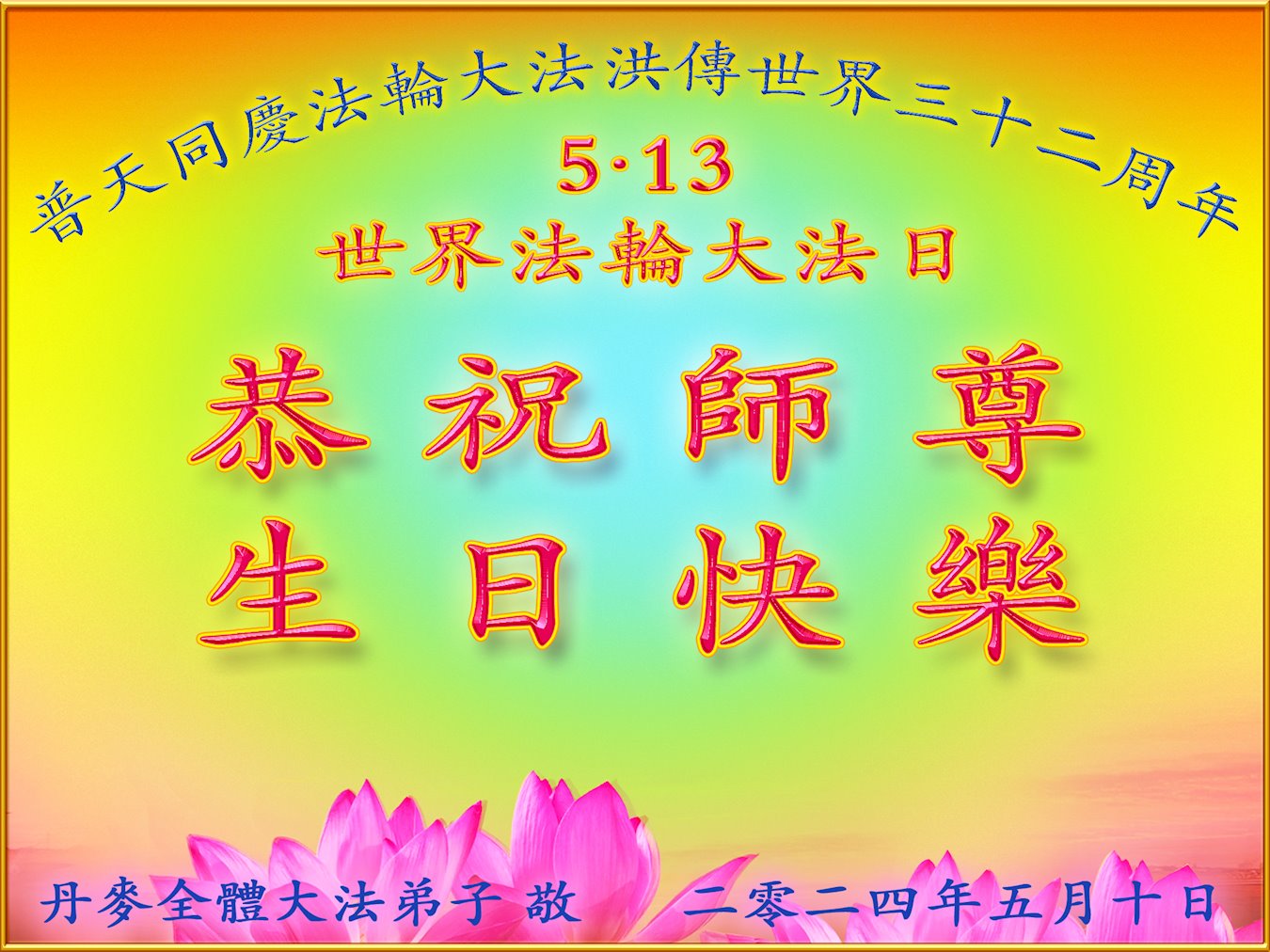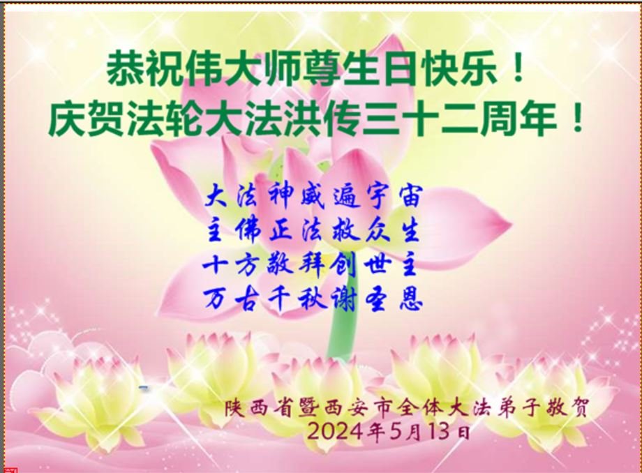 恭贺法轮大法弘传三十二周年!恭祝师尊生日快乐!