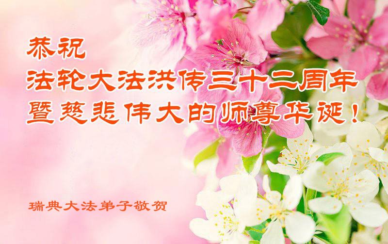 在瑞典的大陆大法弟子恭祝师尊生日快乐!恭祝世界法轮大法日及大法洪传世界32周年,师父辛苦了,谢谢师父慈悲救度。