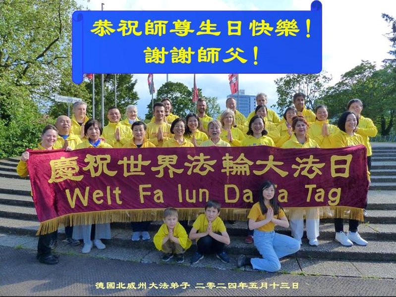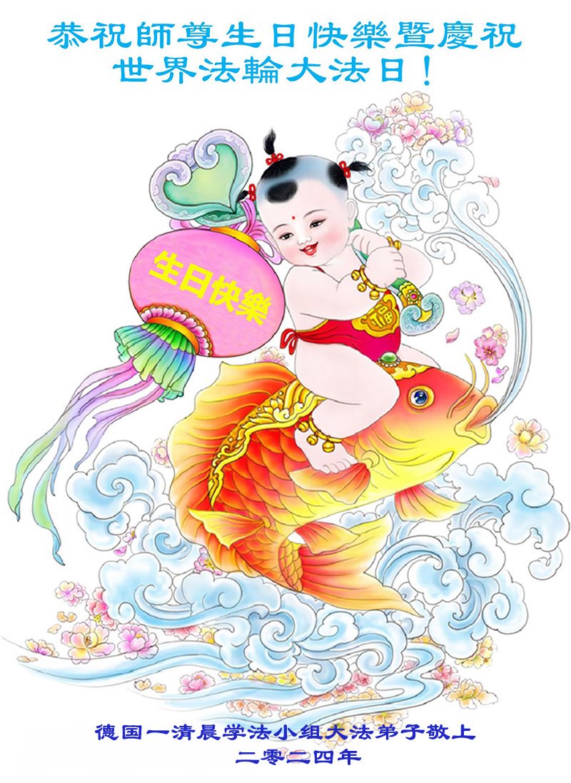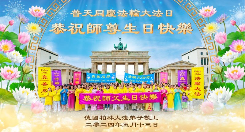 在世界法轮大法日来临之际,柏林全体大法弟子叩谢师尊的慈悲苦度!弟子们会多学法,多救人,更加精進,溶于法中,成为大法的一个粒子。