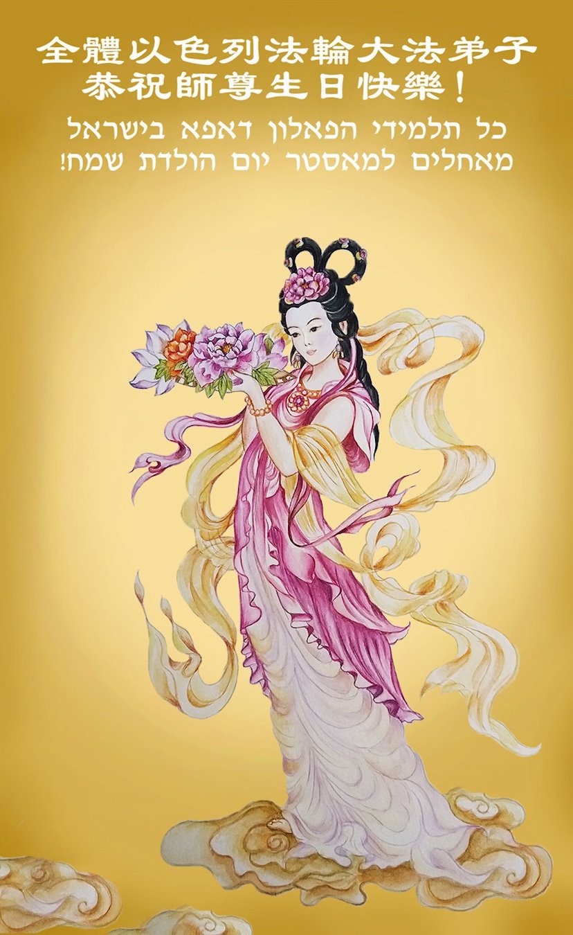 在庆祝世界法轮大法日之际,巴勒斯坦法轮功学员祝尊敬的李洪志师父生日快乐,吉祥如意!