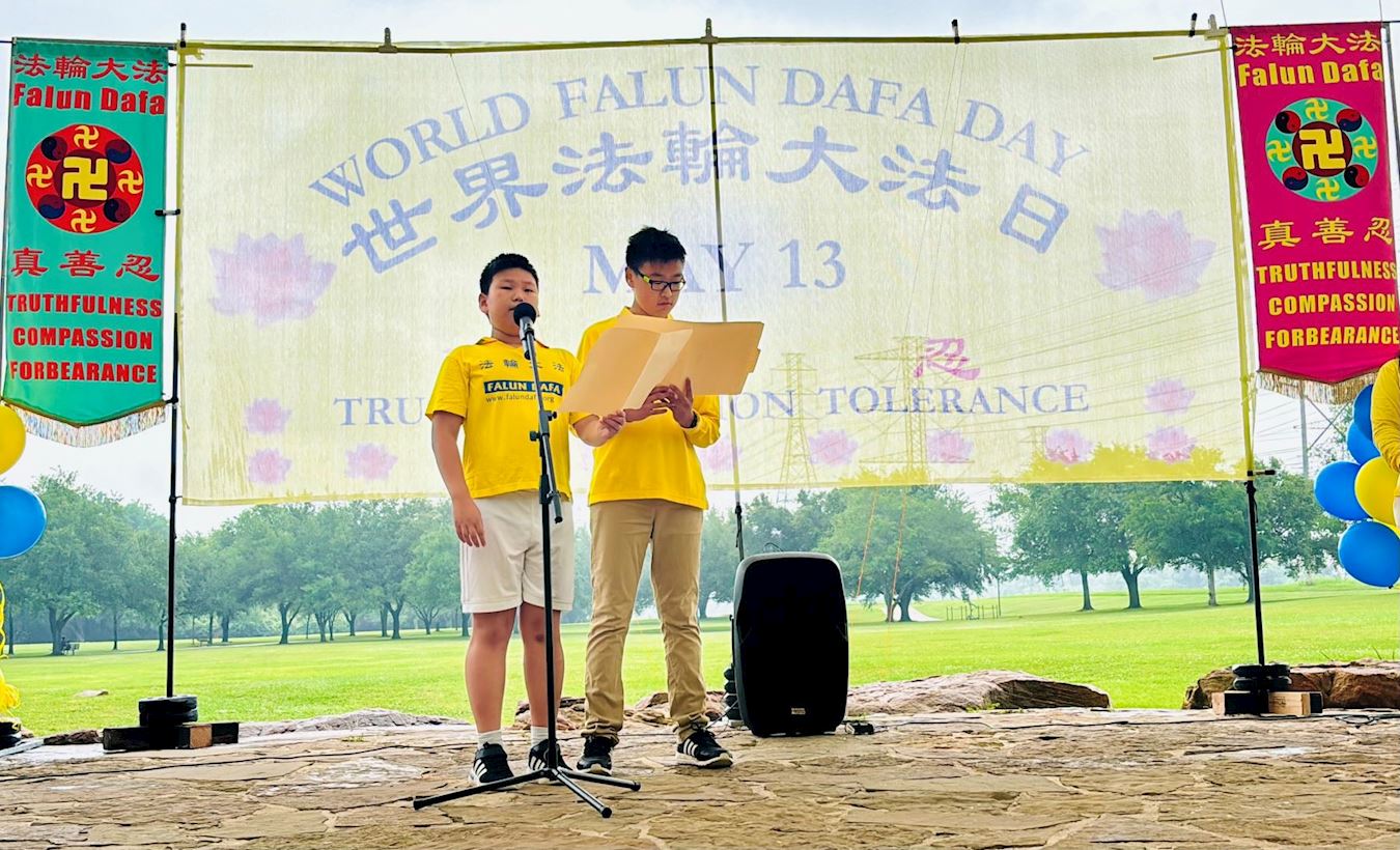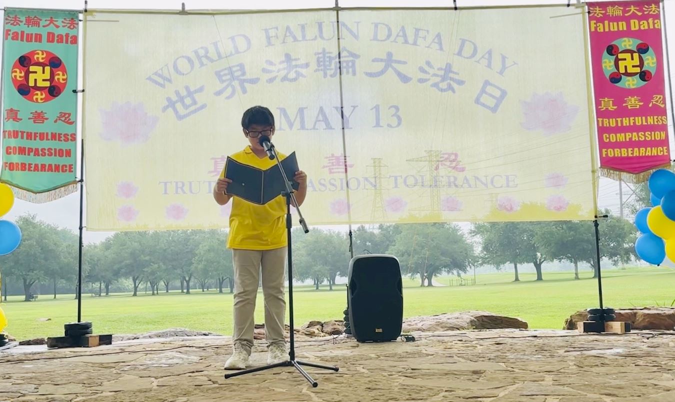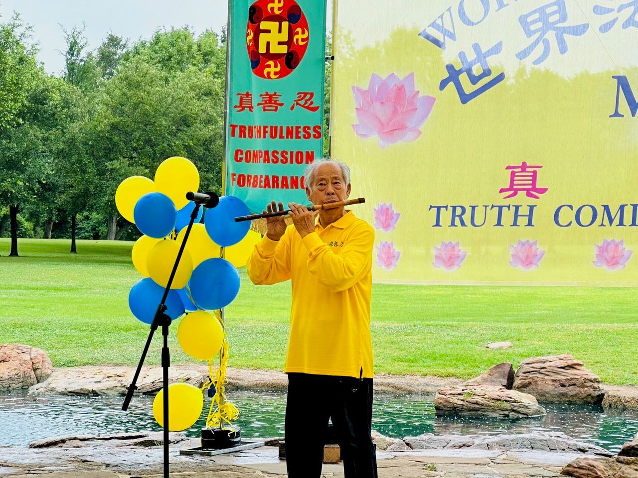 【明慧网二零二四年五月十四日】今年的五月十三日是法轮大法弘传世界三十二周年,暨法轮功创始人李洪志先生七十三岁华诞。二零二四年五月十二日,美国德州休斯顿以及部份来自奥斯汀、大学城以及新布朗费尔斯(New Braunfels)的法轮功学员在休斯顿西南区的蚌溪公园(Oyster Creek Park)举办世界法轮大法日庆祝活动,恭祝师尊生日快乐。