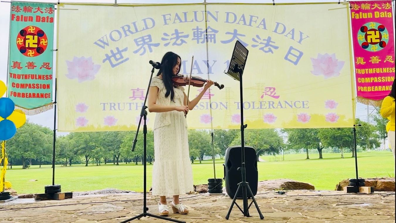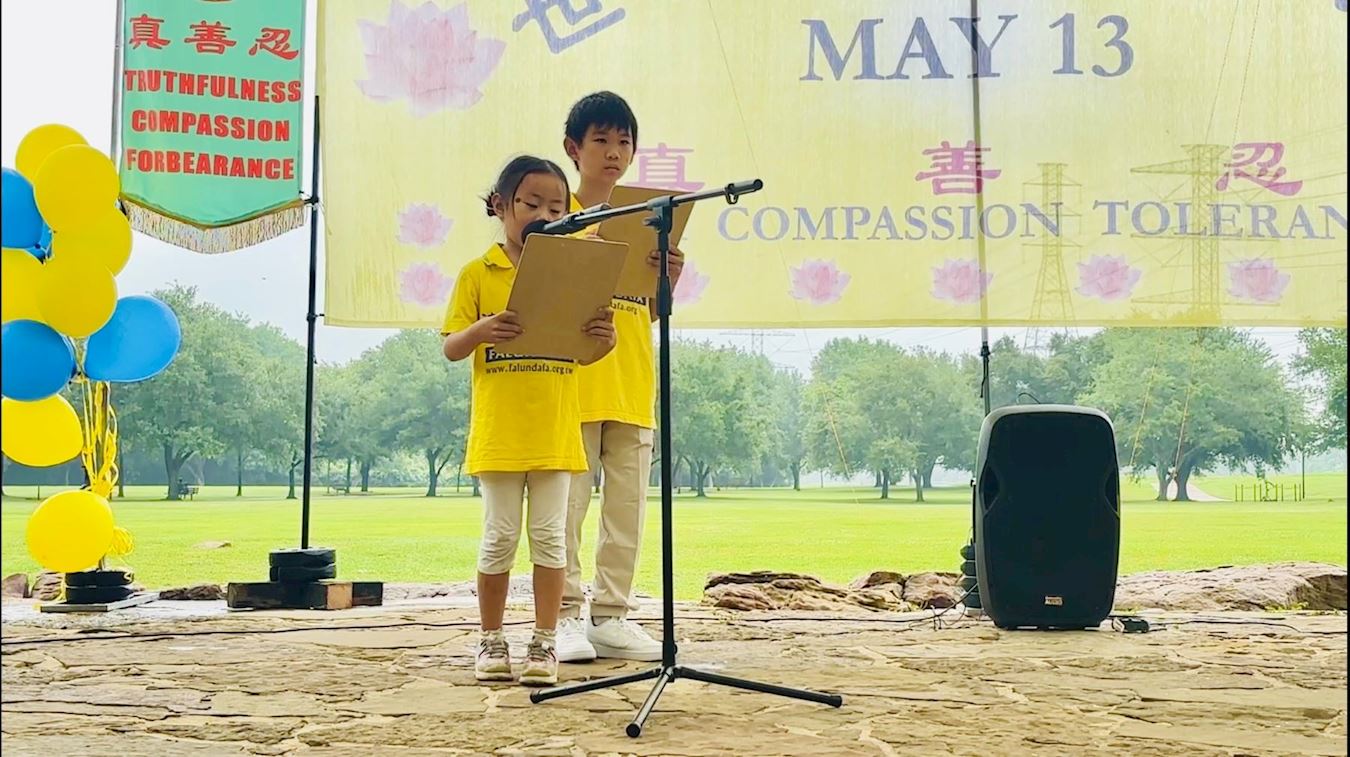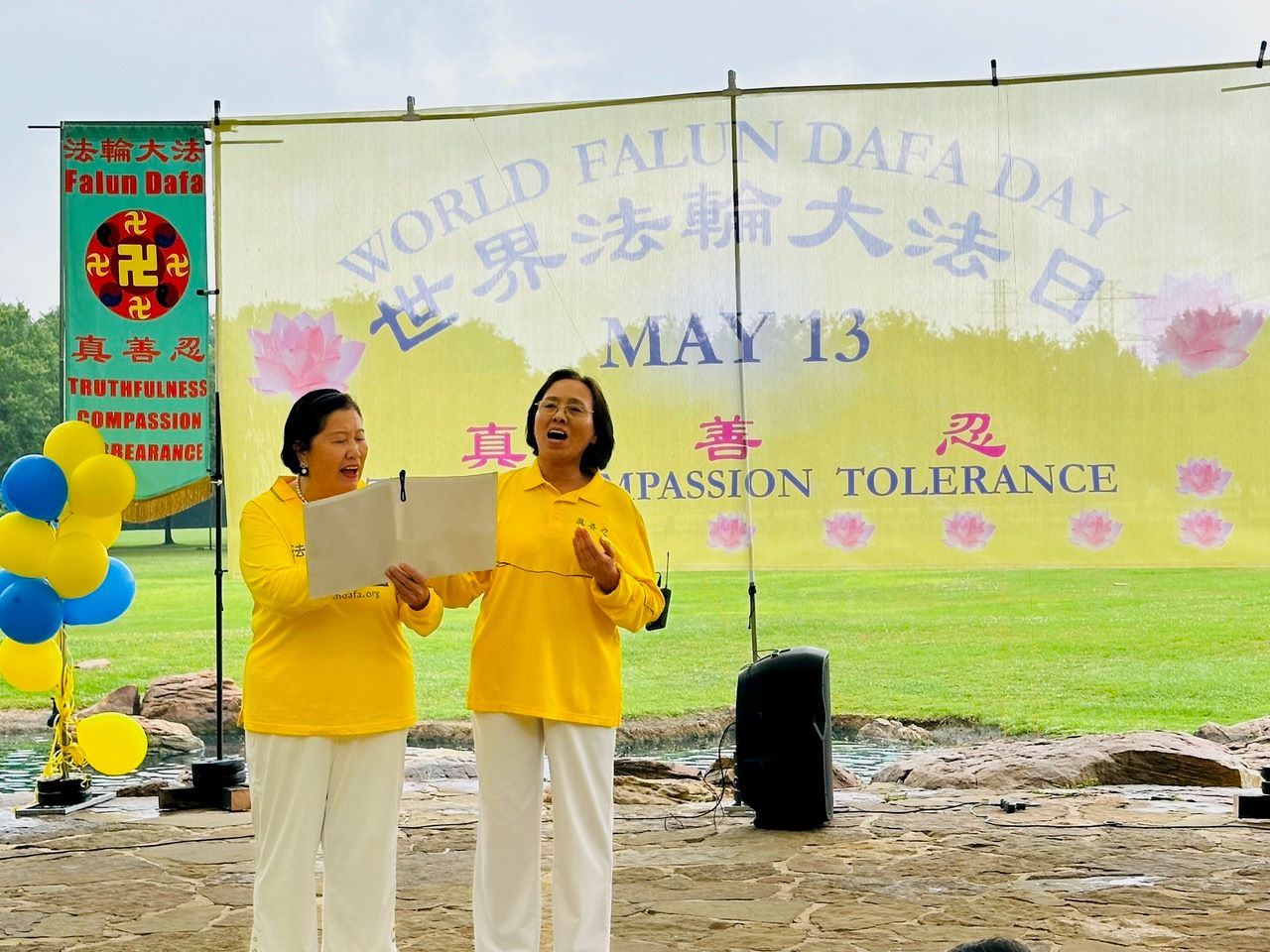 【明慧网二零二四年五月十四日】今年的五月十三日是法轮大法弘传世界三十二周年,暨法轮功创始人李洪志先生七十三岁华诞。二零二四年五月十二日,美国德州休斯顿以及部份来自奥斯汀、大学城以及新布朗费尔斯(New Braunfels)的法轮功学员在休斯顿西南区的蚌溪公园(Oyster Creek Park)举办世界法轮大法日庆祝活动,恭祝师尊生日快乐。