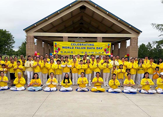 - 庆祝法轮大法日 达拉斯各族裔学员谢师恩- 五月十二日上午,美国德州达拉斯地区的法轮功学员在布兰诺市(的罗素溪公园庆祝法轮大法弘传世界三十二周年暨第二十五届法轮大法日。
