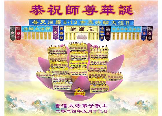 - 台湾、香港大法弟子恭贺世界法轮大法日暨师尊华诞- 感谢师父慈悲救度!弟子们无比幸运能得法走上修炼道路。弟子们在最后的时间里一定正念正行,精進实修,抓紧时间做好三件事。