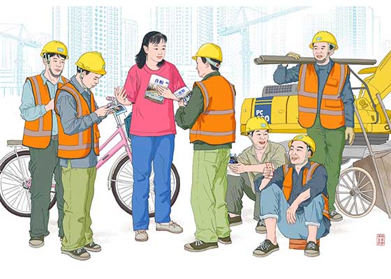 - 【庆祝5.13】绘画:建筑工地传《真相》- 大陆大法弟子在建筑工地传播明慧网《真相》月刊,救度世人。