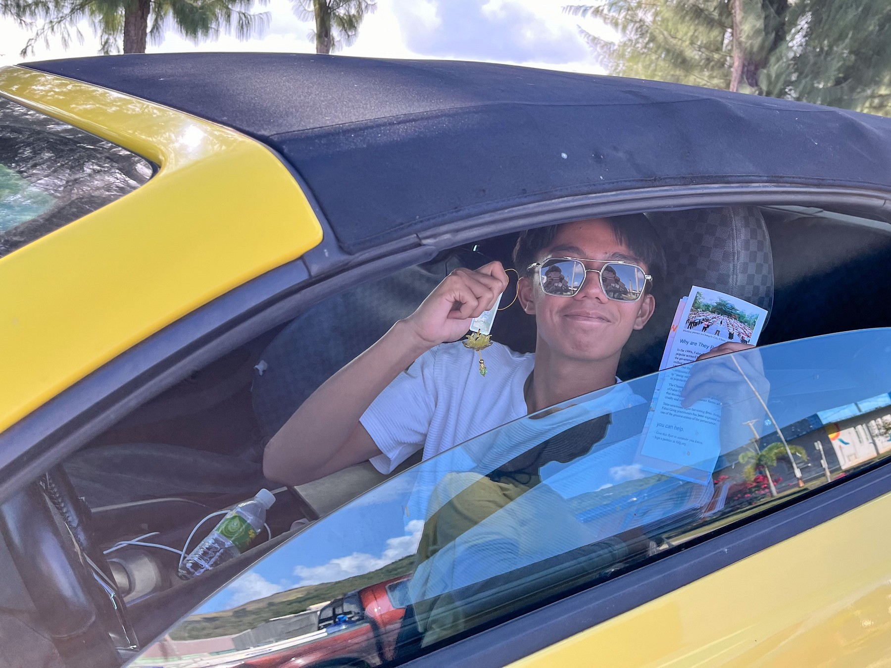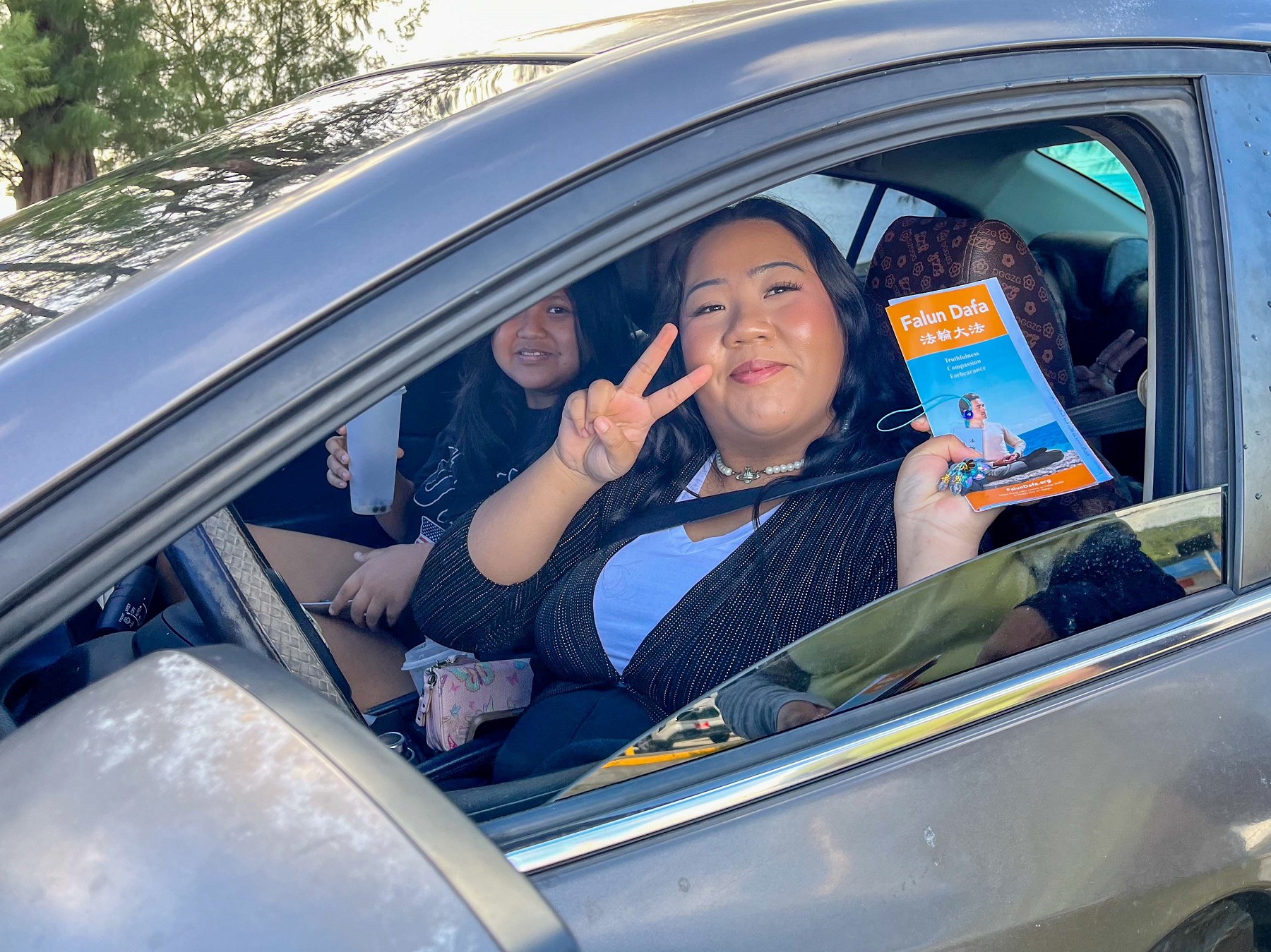 【明慧网二零二四年五月十五日】二零二四年五月十三日,法轮大法弘传世界三十二周年,普天同庆的世界法轮大法日,暨法轮功创始人李洪志大师华诞。美国塞班岛部分法轮功学员举行了弘法、讲真相,以及环岛“庆祝5.13世界法轮大法日”车队游行的活动,向市民传递大法的美好,祝贺师尊生日快乐。