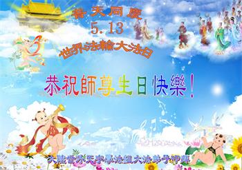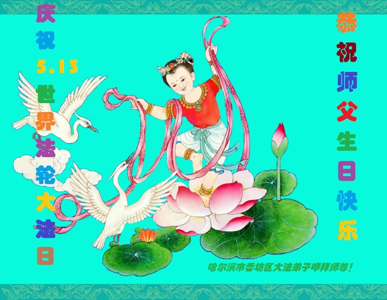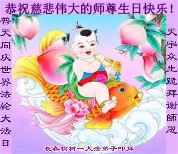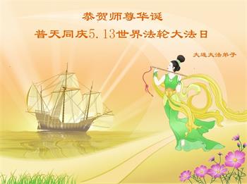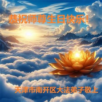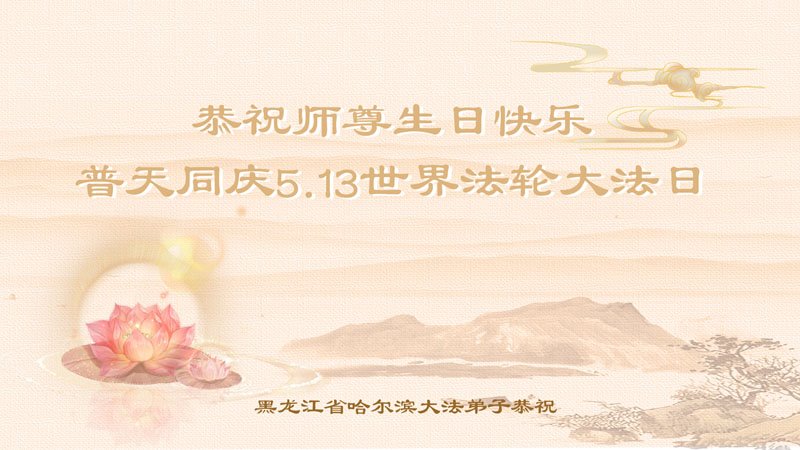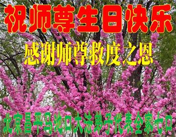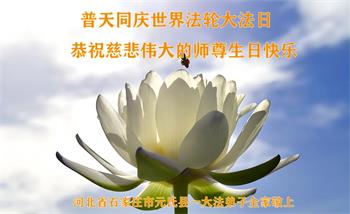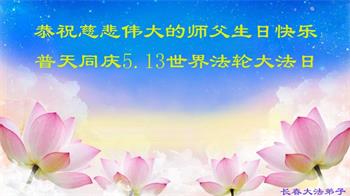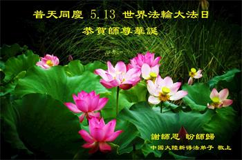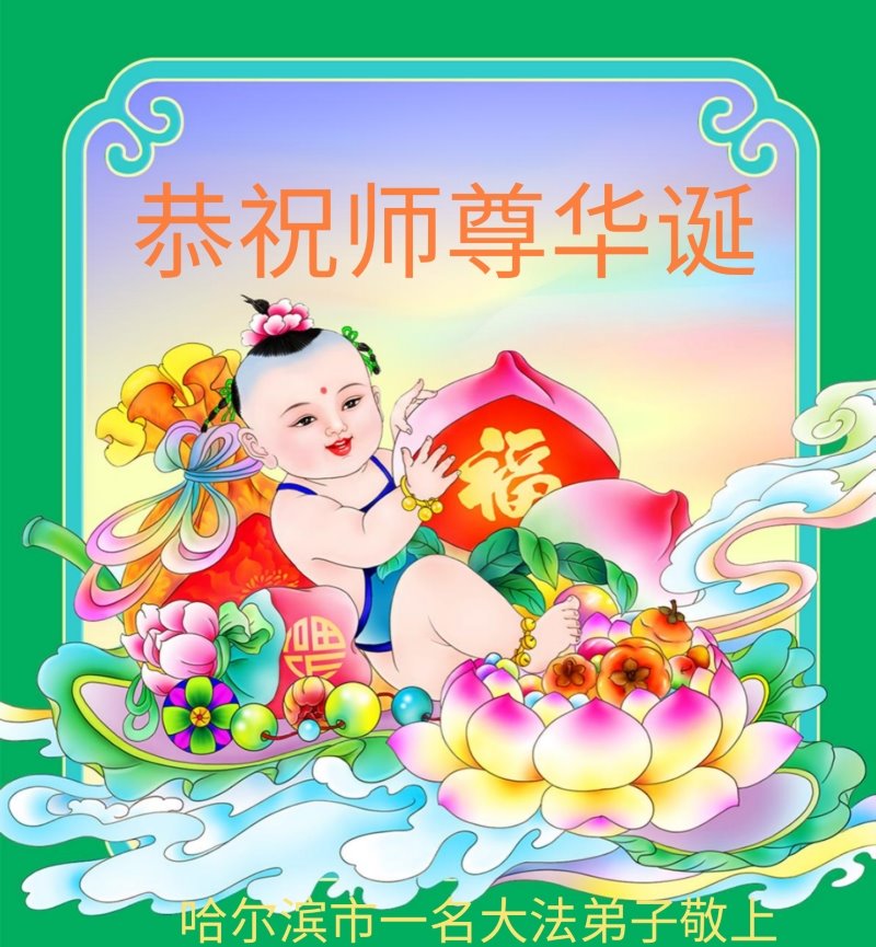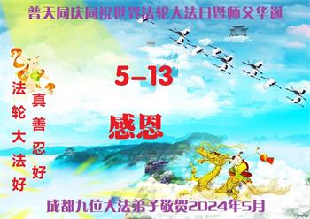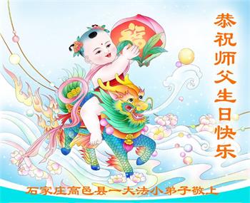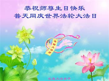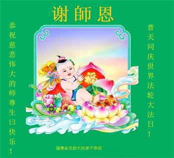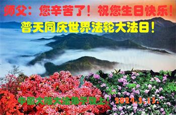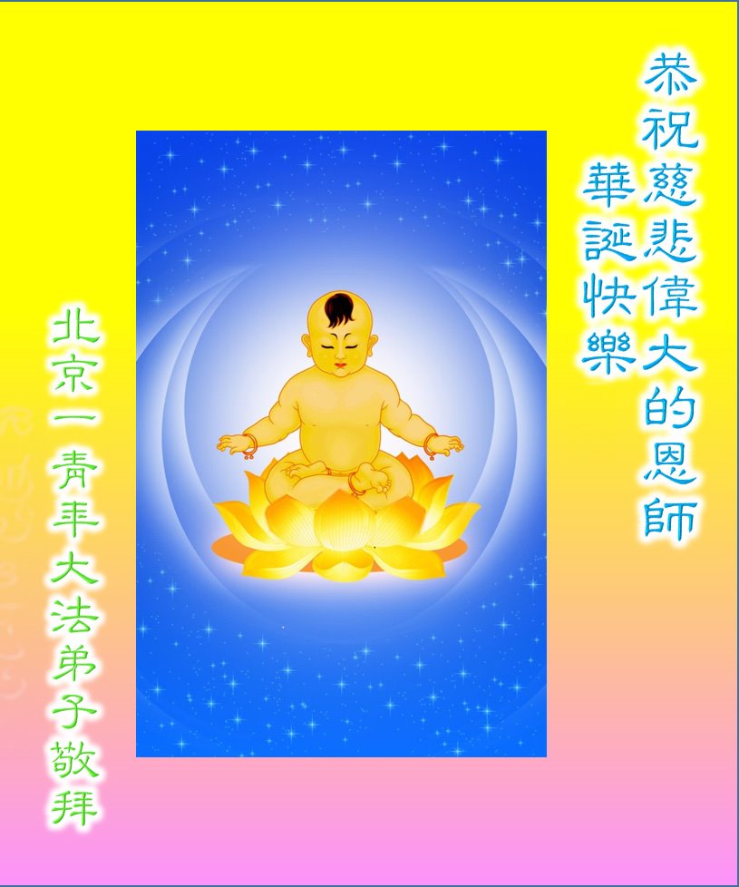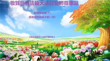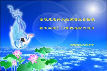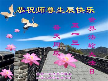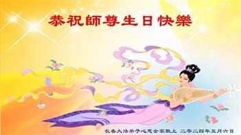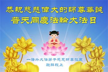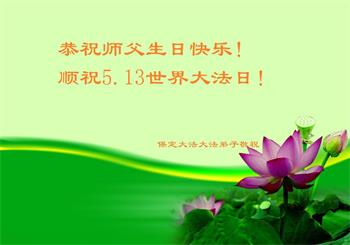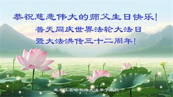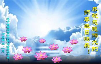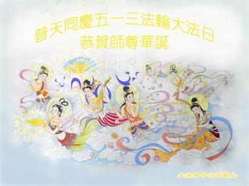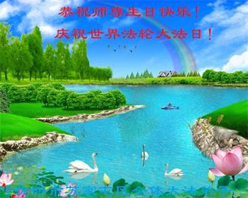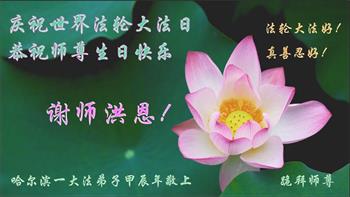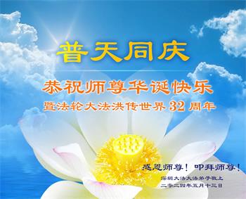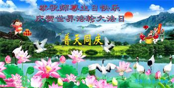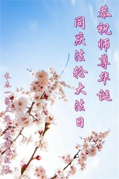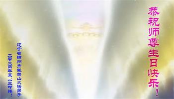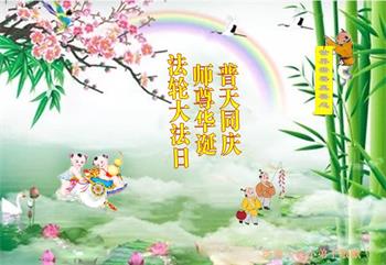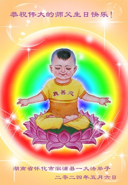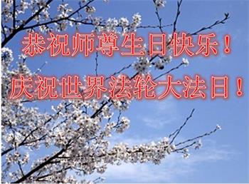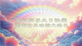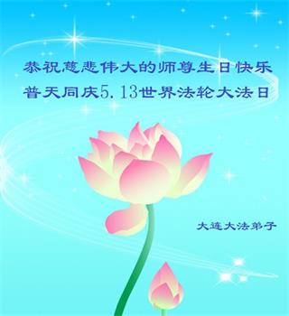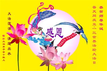 在普天同庆的日子里,我怀着虔诚的心感恩师父,这是无法用人类语言来表达的心境。恭祝师父生日快乐!祝贺大法洪传三十二周年!