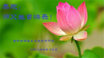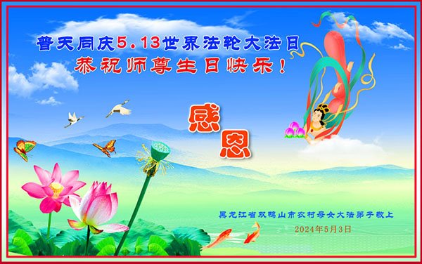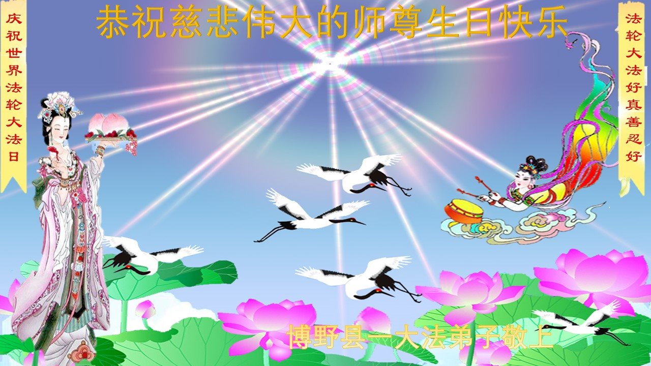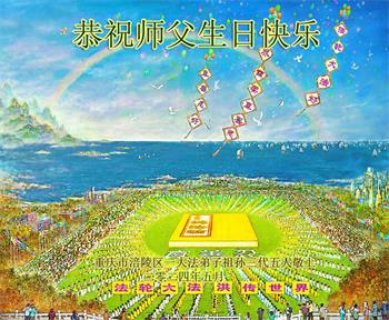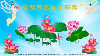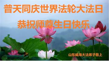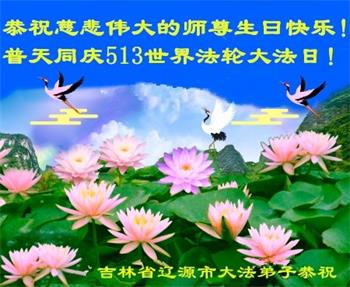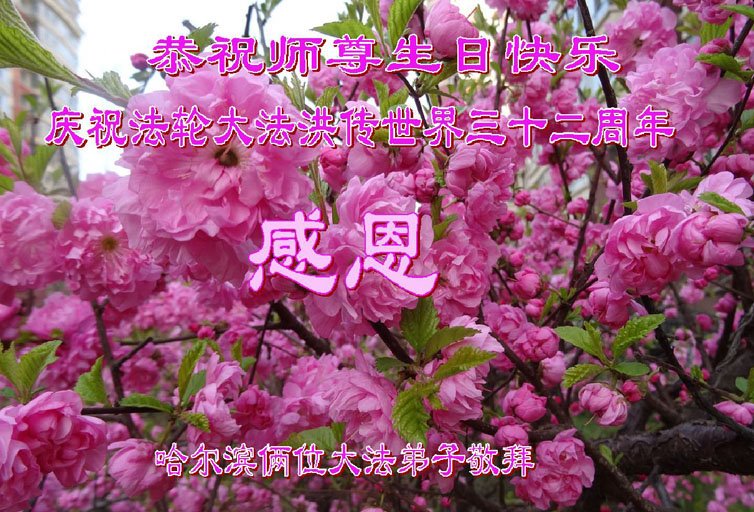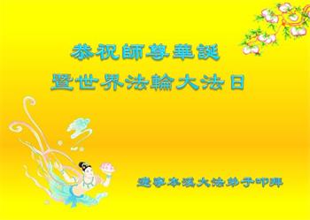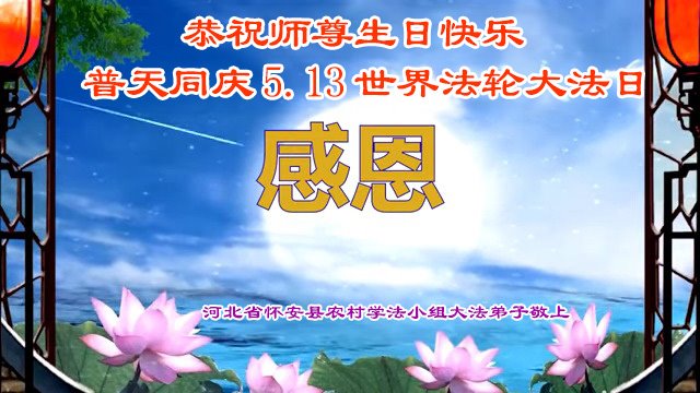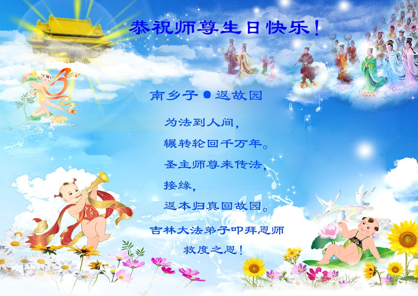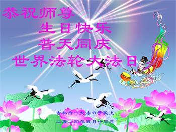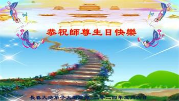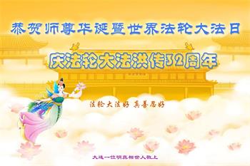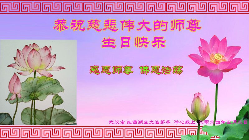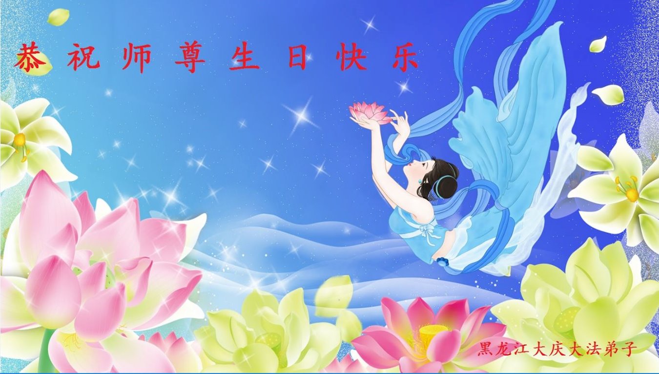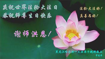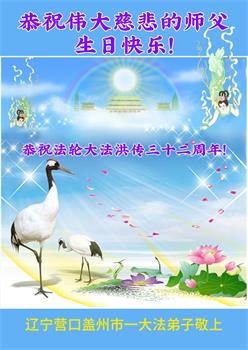 在普天同庆的日子里,我怀着虔诚的心感恩师父,这是无法用人类语言来表达的心境。恭祝师父生日快乐!祝贺大法洪传三十二周年!