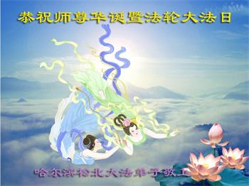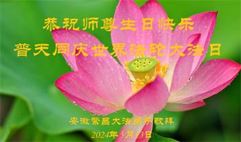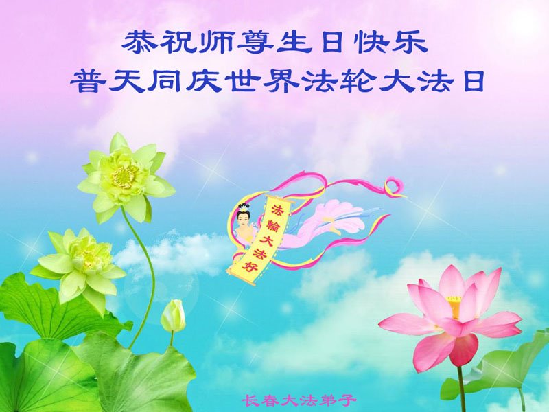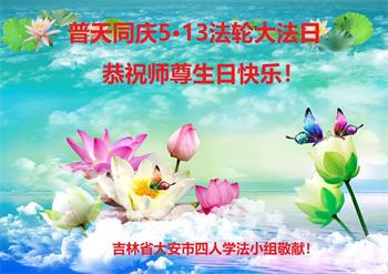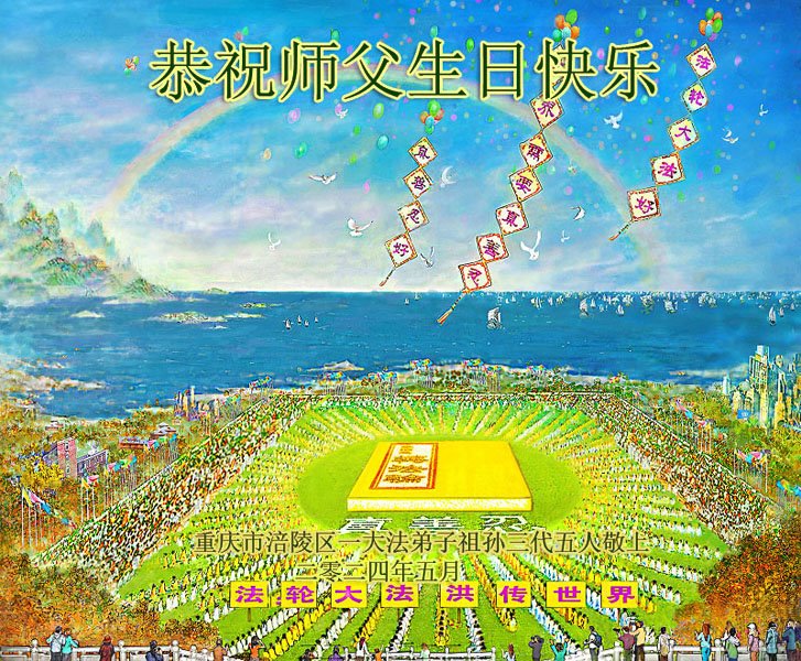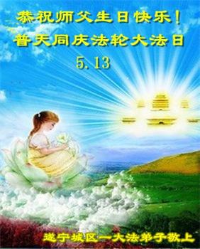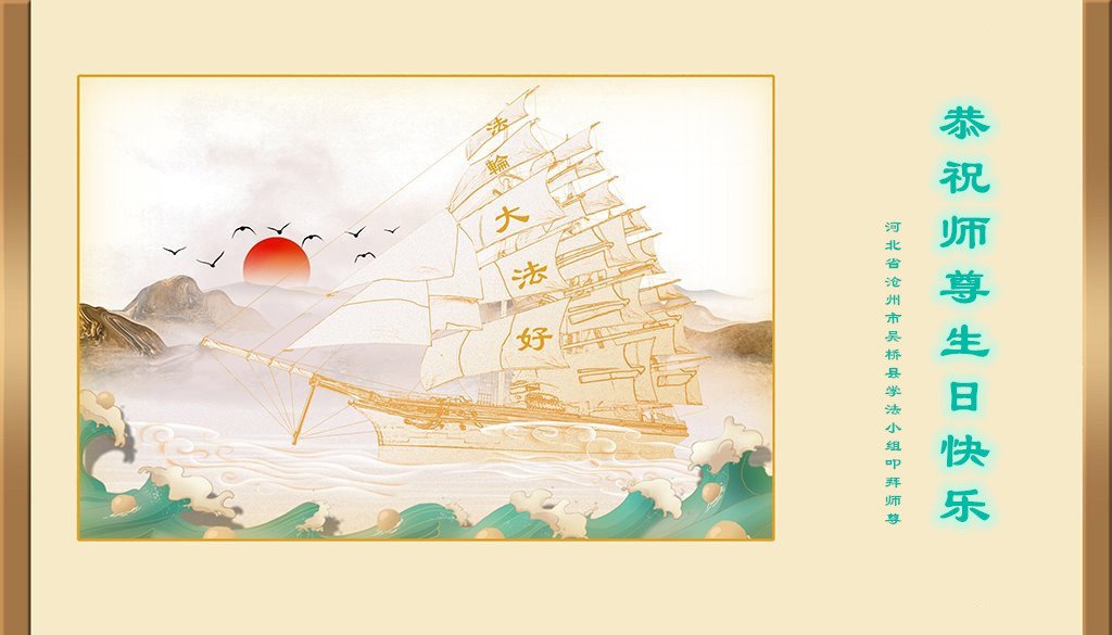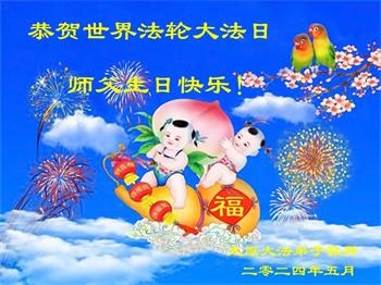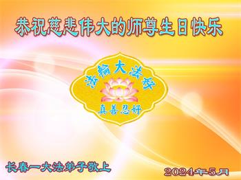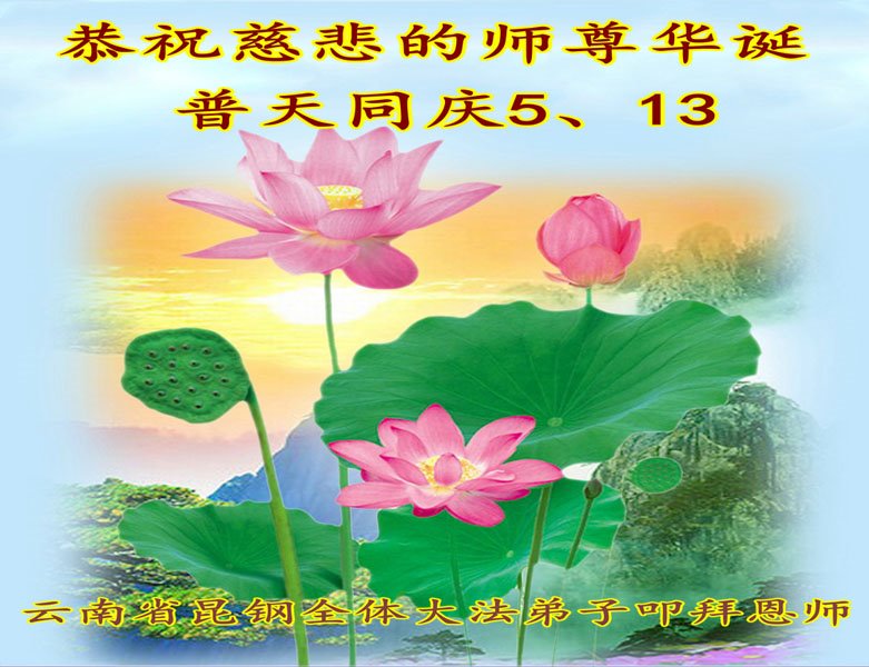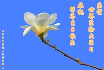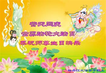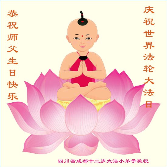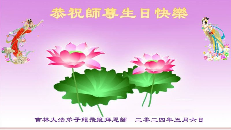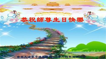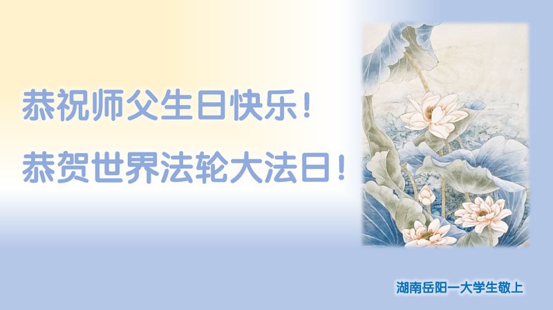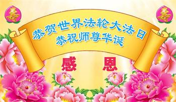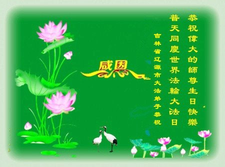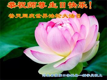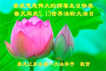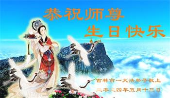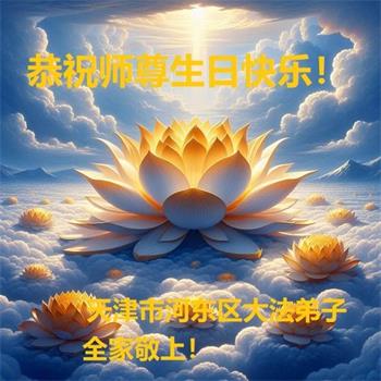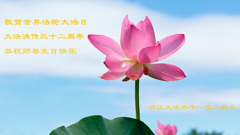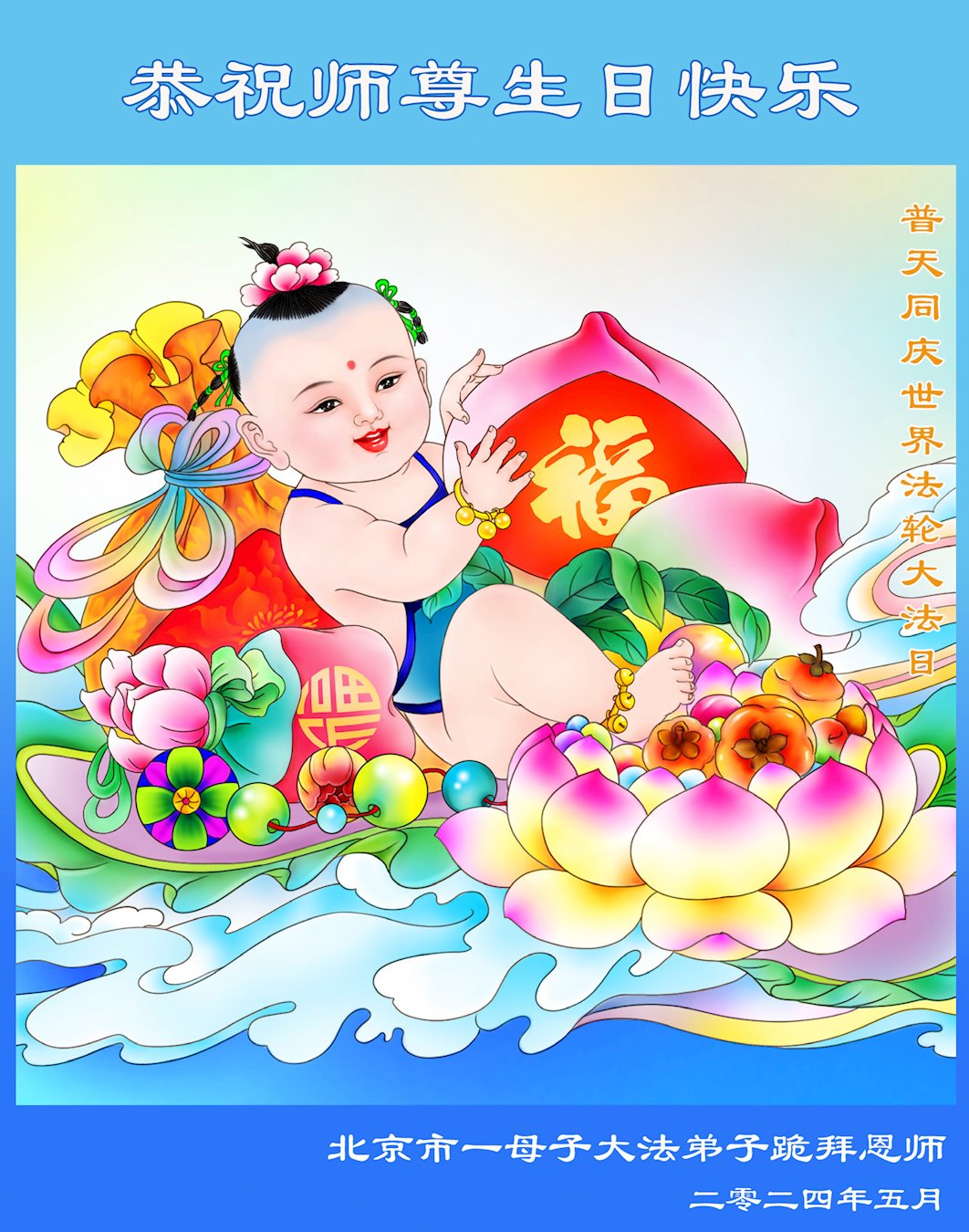 在普天同庆的日子里,我怀着虔诚的心感恩师父,这是无法用人类语言来表达的心境。恭祝师父生日快乐!祝贺大法洪传三十二周年!