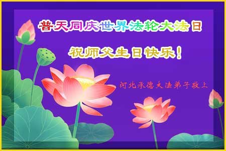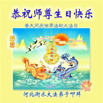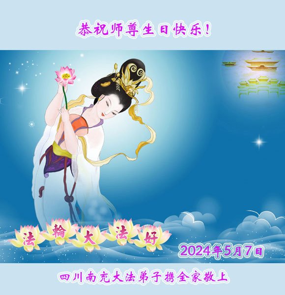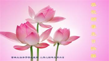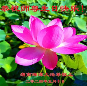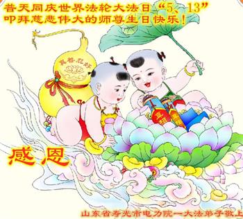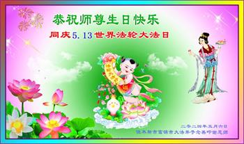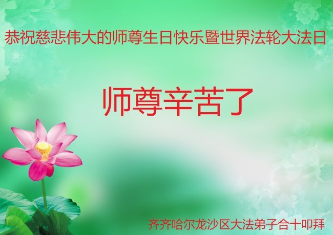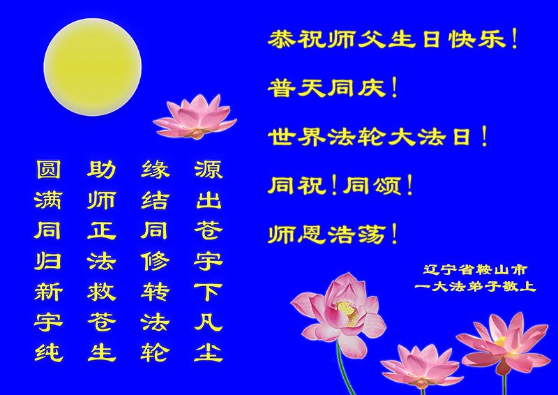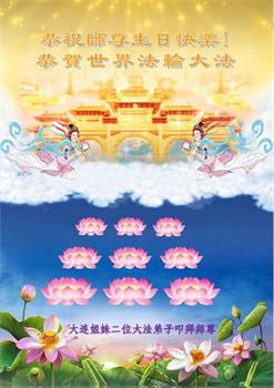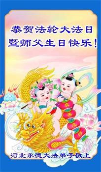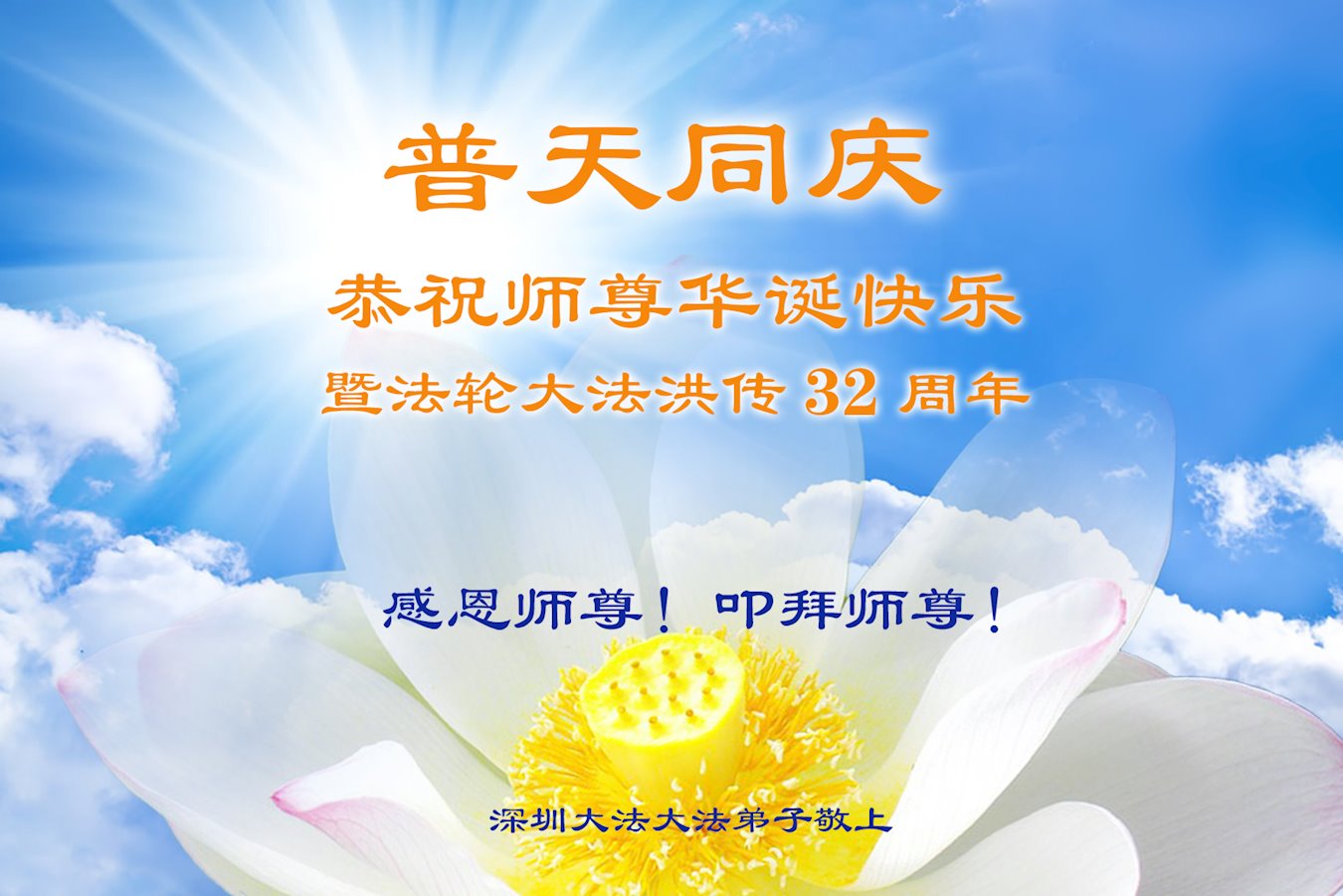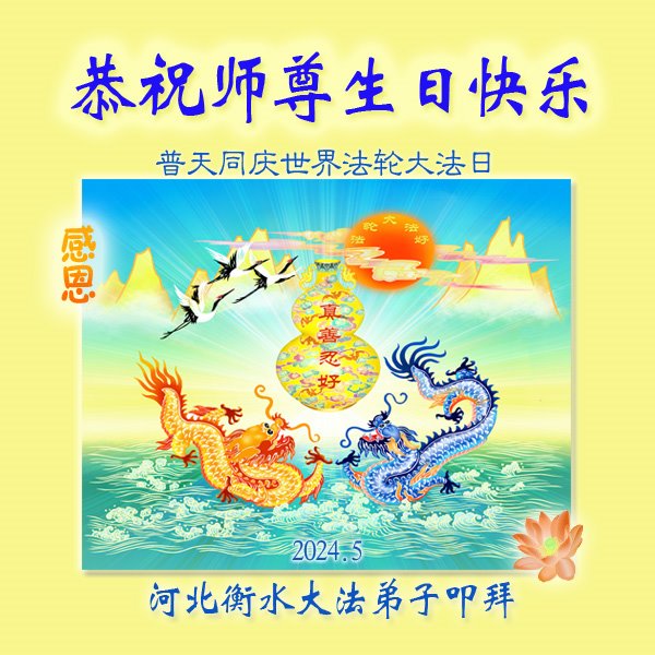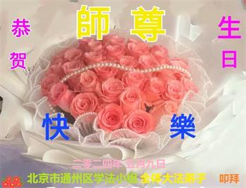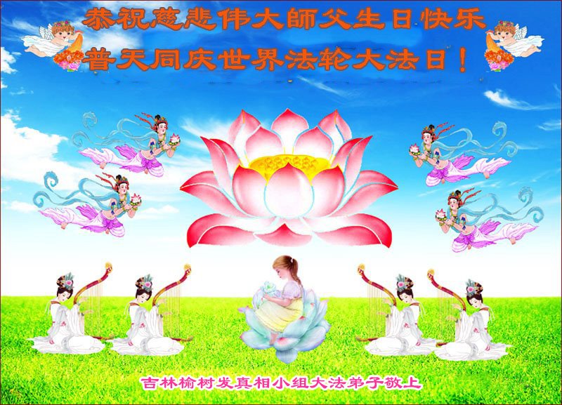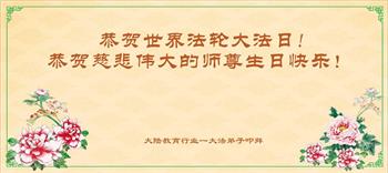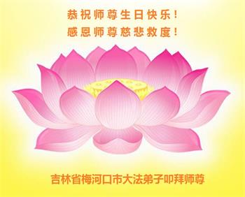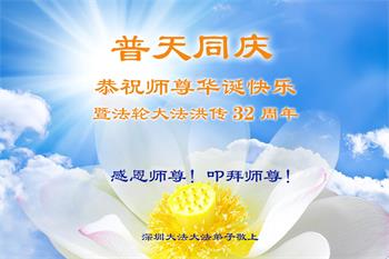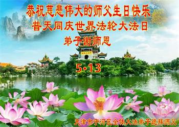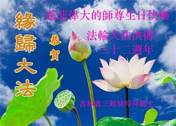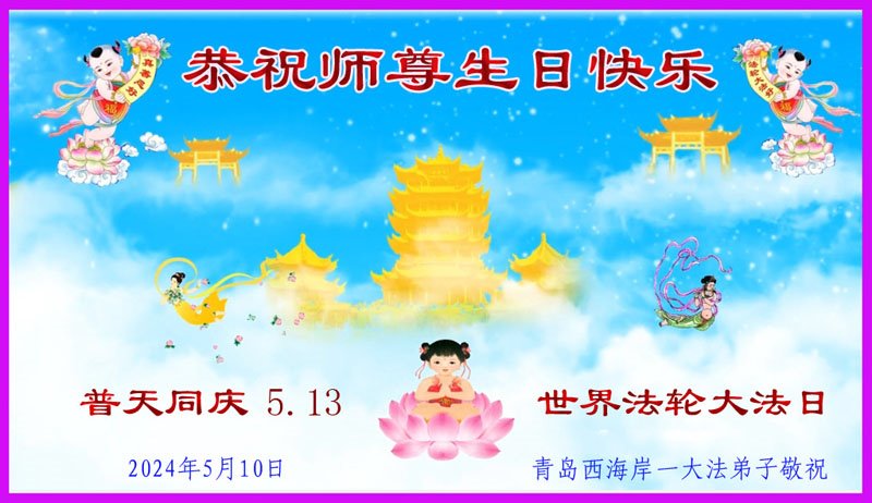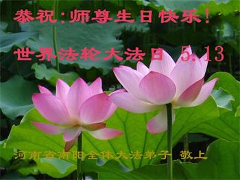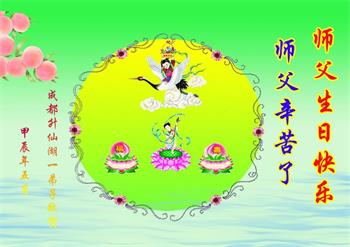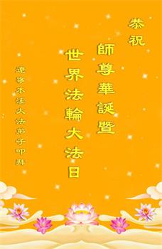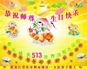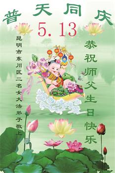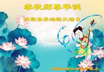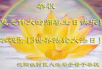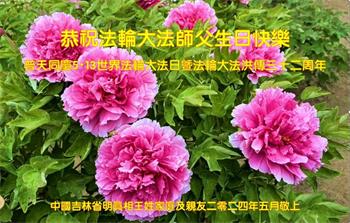 在普天同庆的日子里,我怀着虔诚的心感恩师父,这是无法用人类语言来表达的心境。恭祝师父生日快乐!祝贺大法洪传三十二周年!