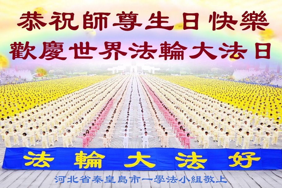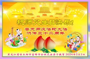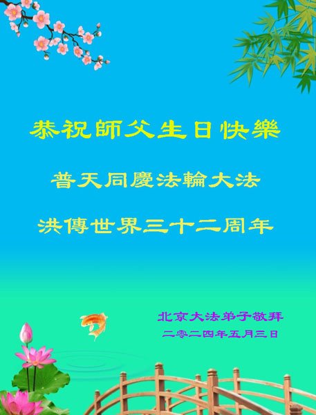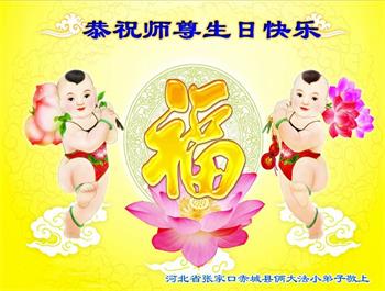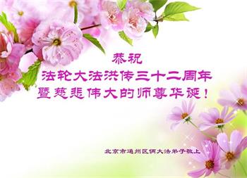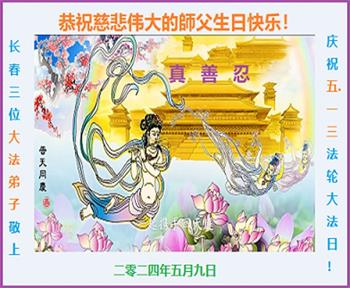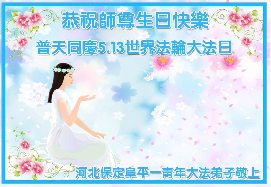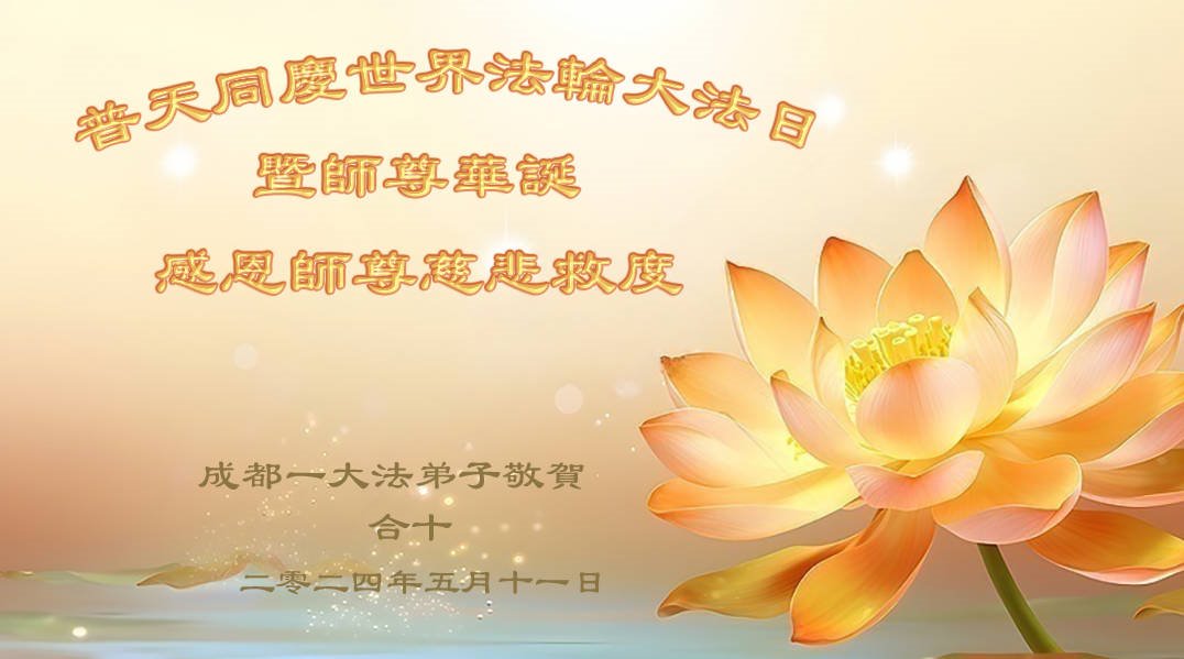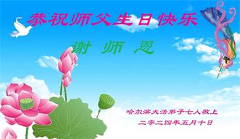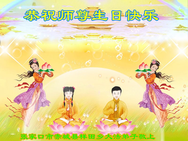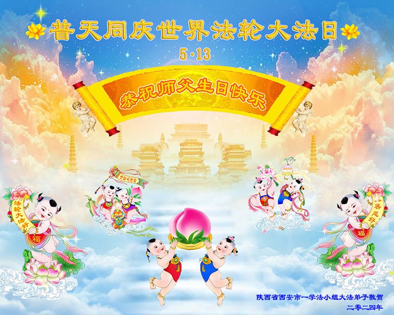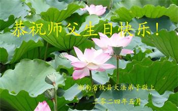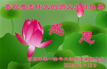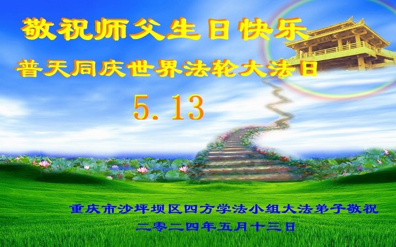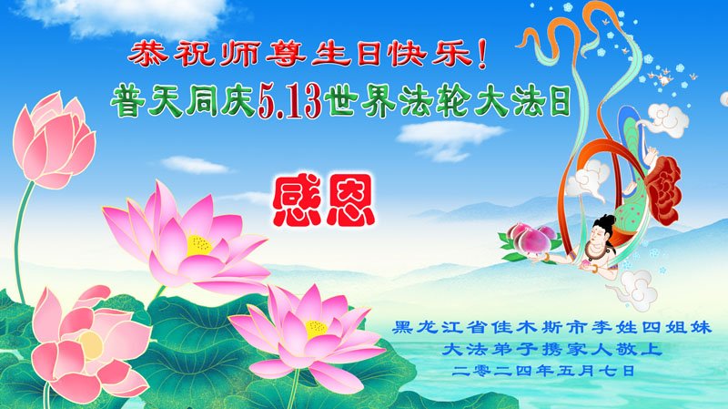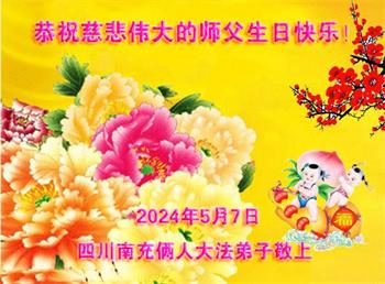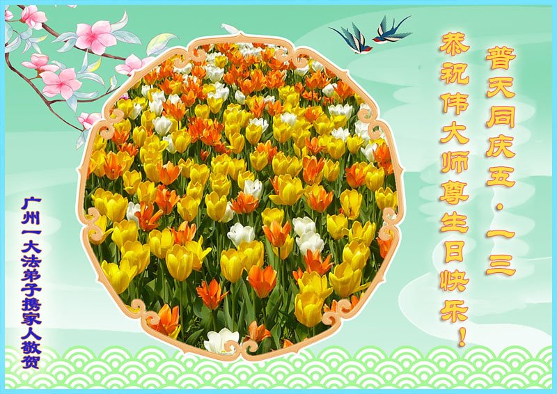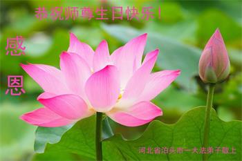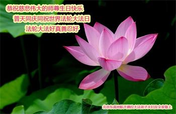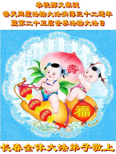 在普天同庆的日子里,我怀着虔诚的心感恩师父,这是无法用人类语言来表达的心境。恭祝师父生日快乐!祝贺大法洪传三十二周年!