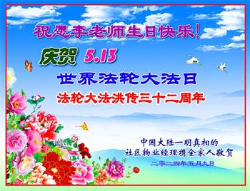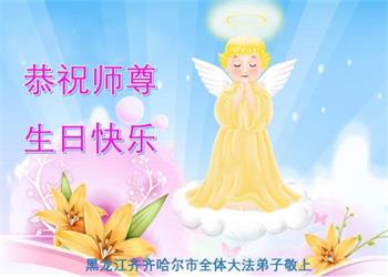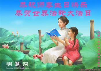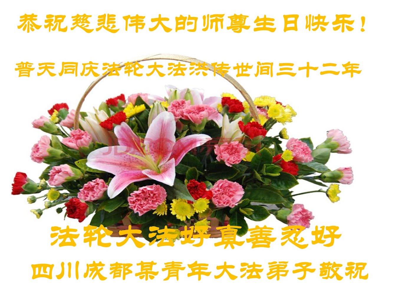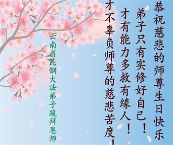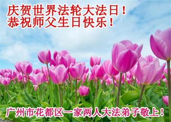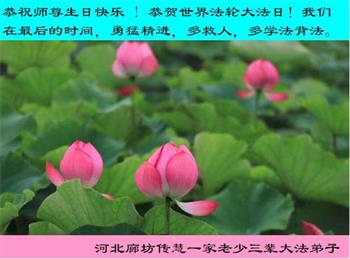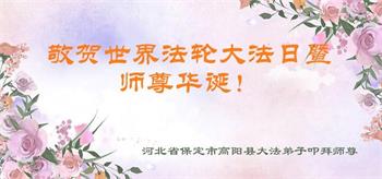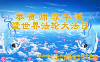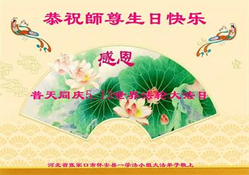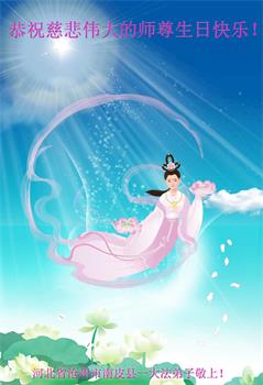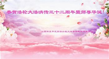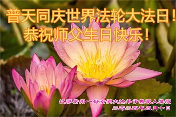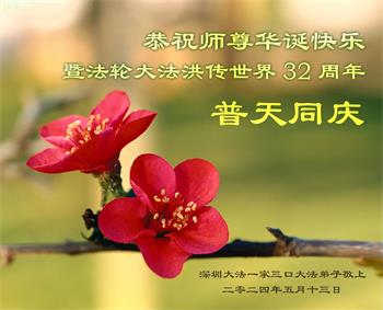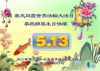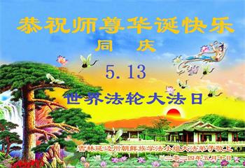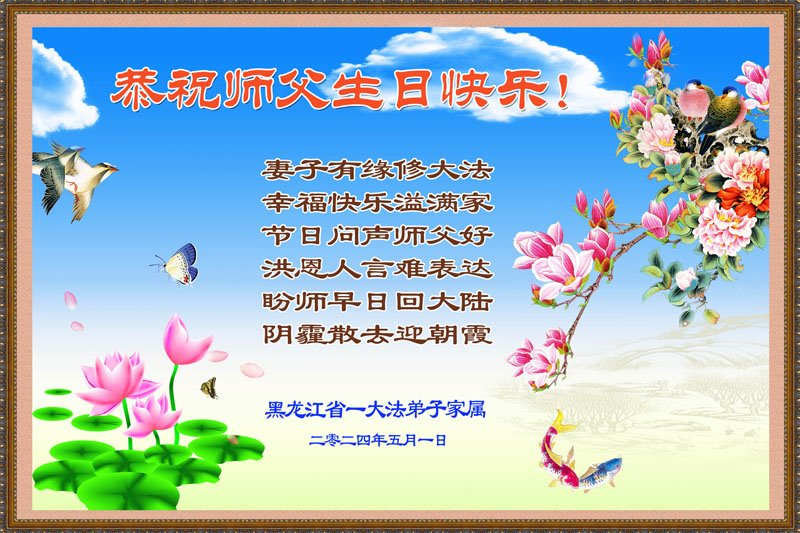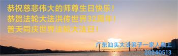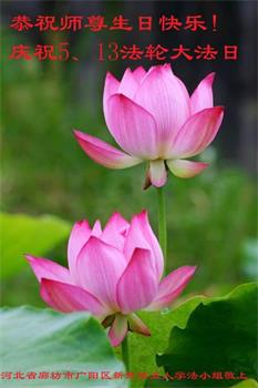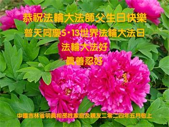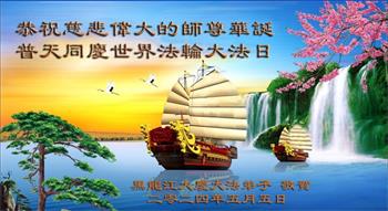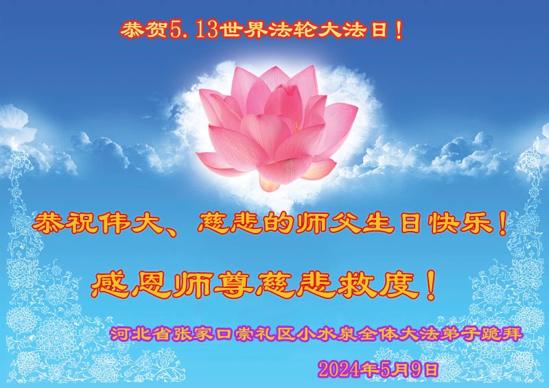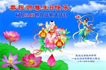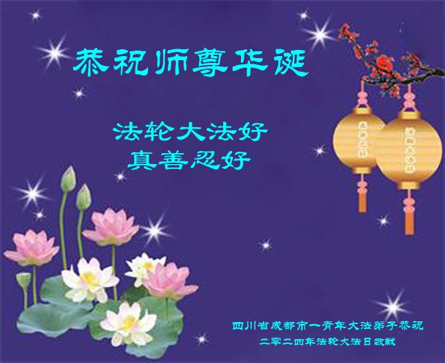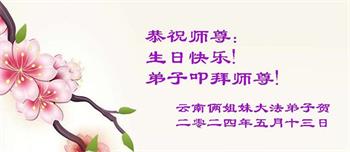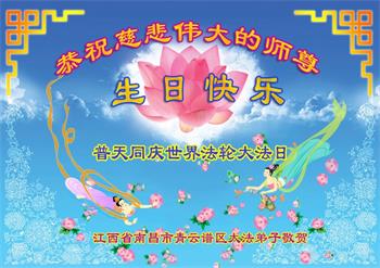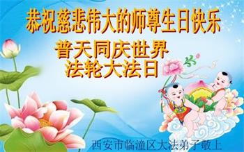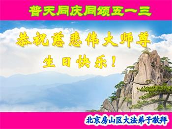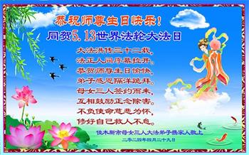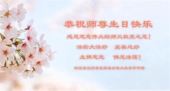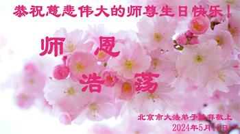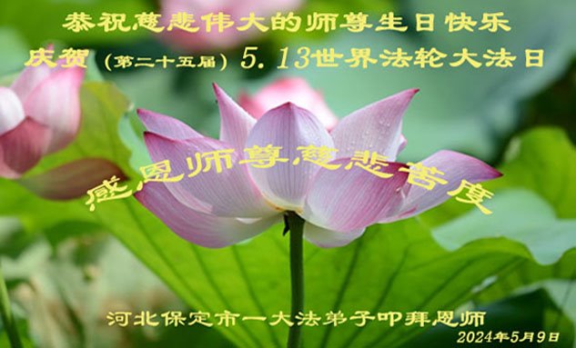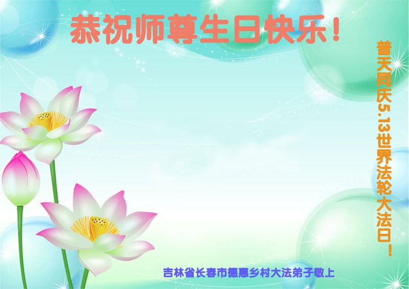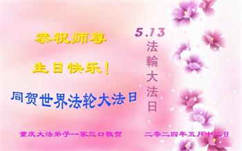 在普天同庆的日子里,我怀着虔诚的心感恩师父,这是无法用人类语言来表达的心境。恭祝师父生日快乐!祝贺大法洪传三十二周年!