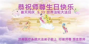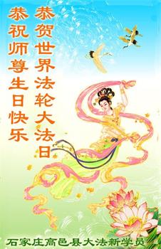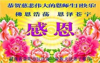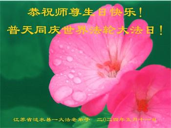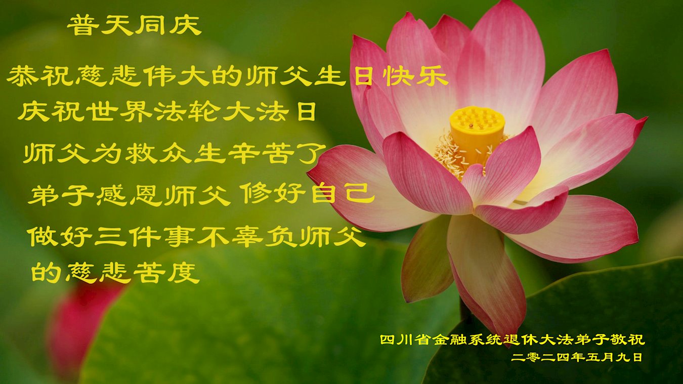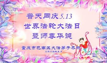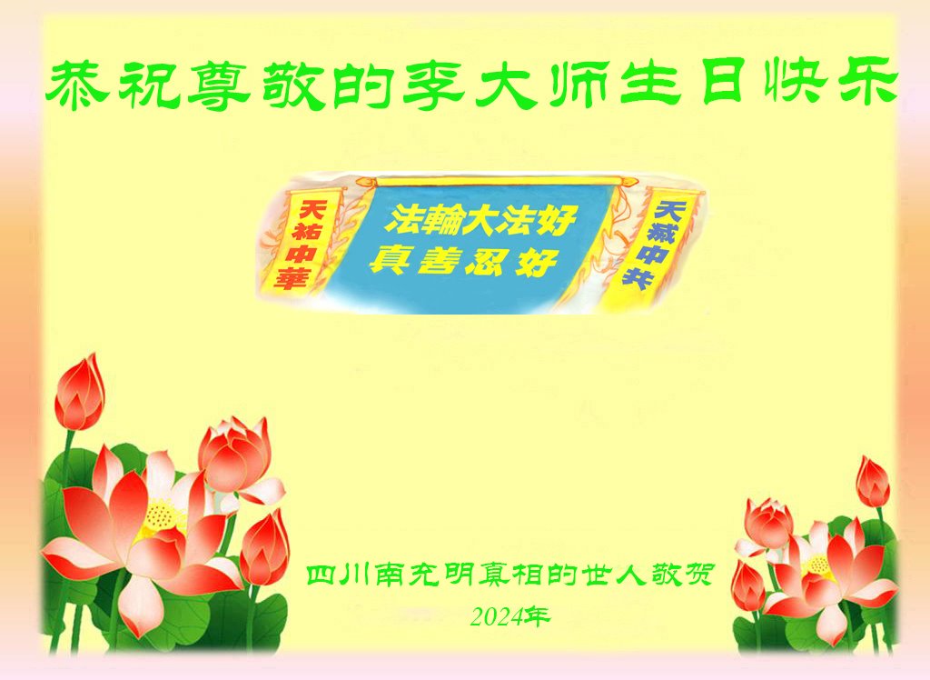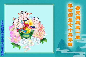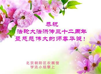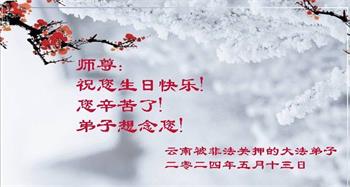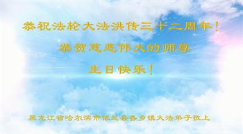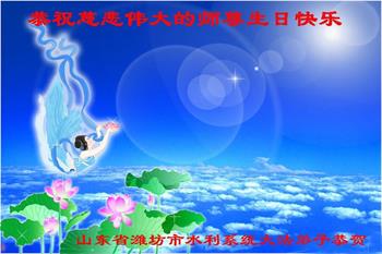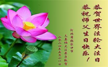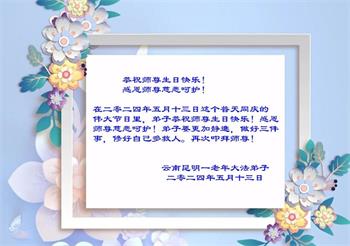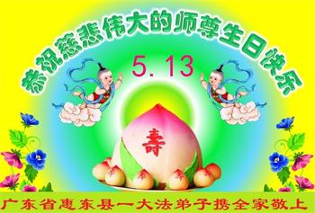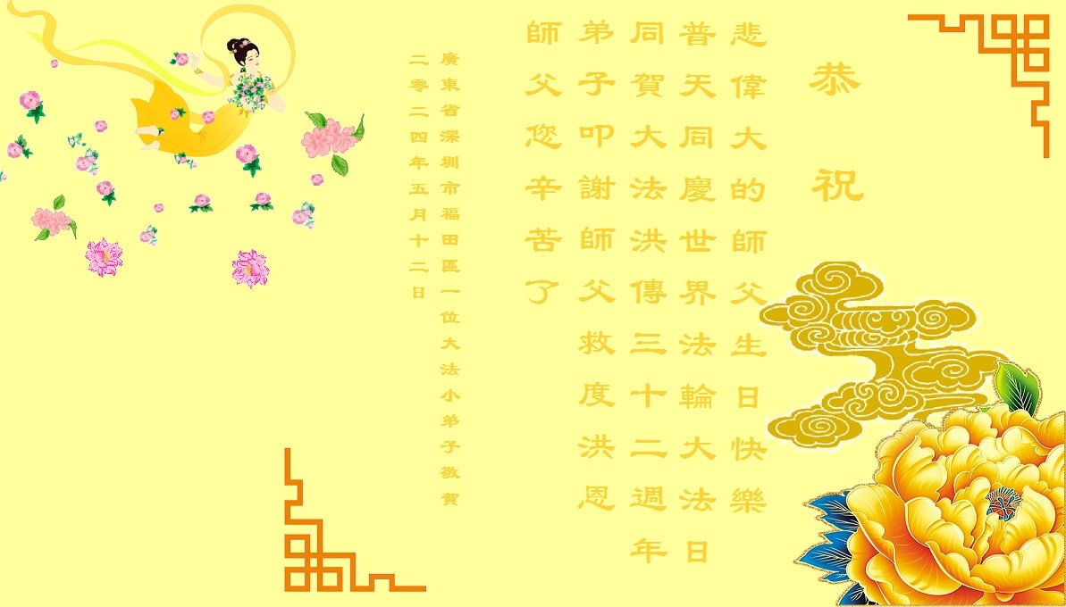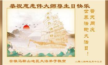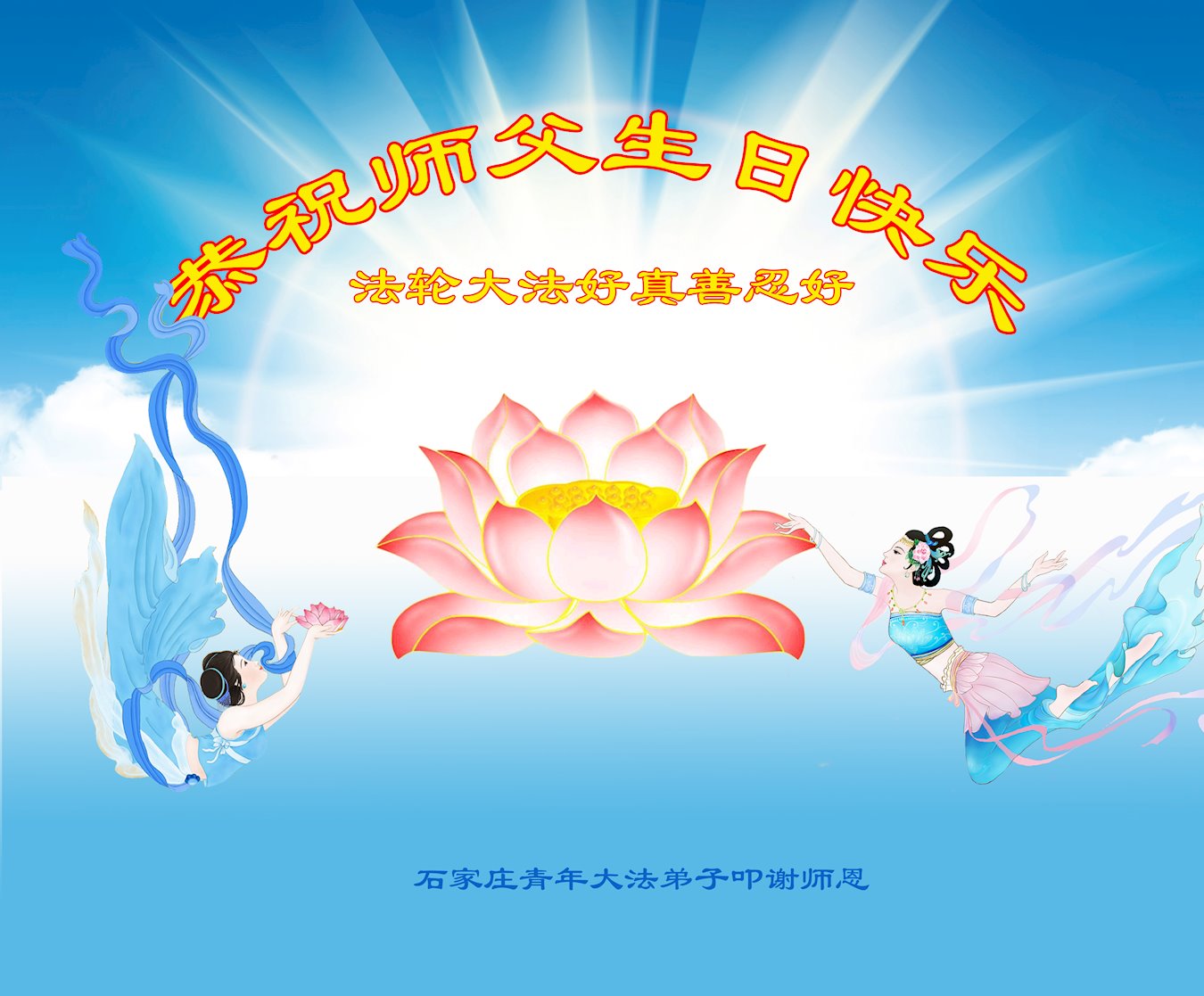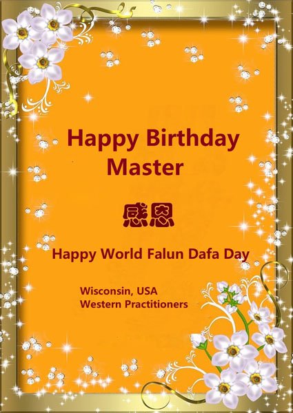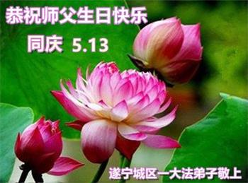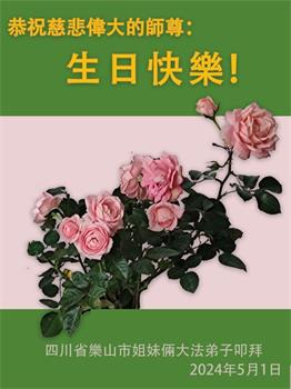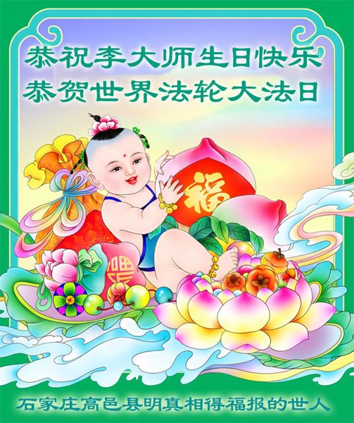 在普天同庆的日子里,我怀着虔诚的心感恩师父,这是无法用人类语言来表达的心境。恭祝师父生日快乐!祝贺大法洪传三十二周年!