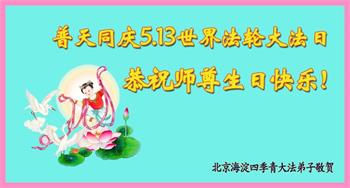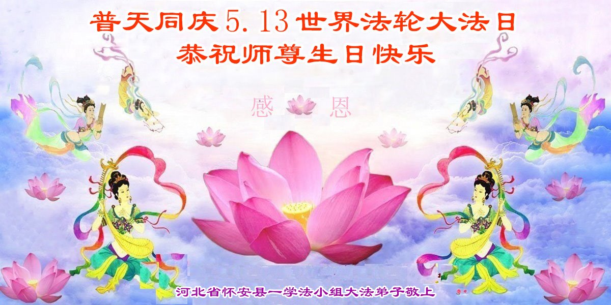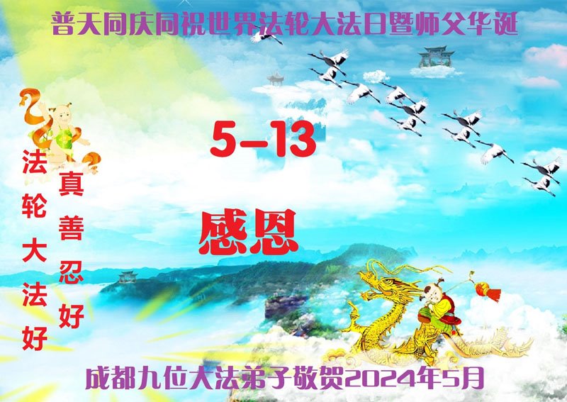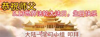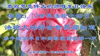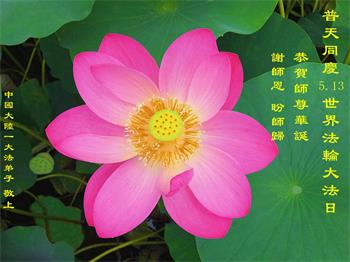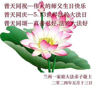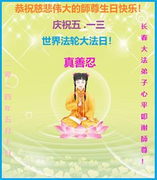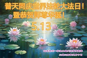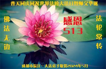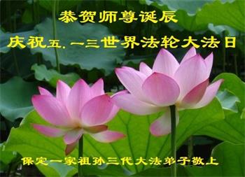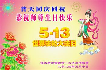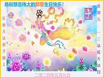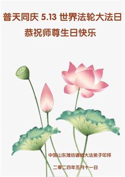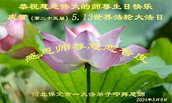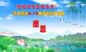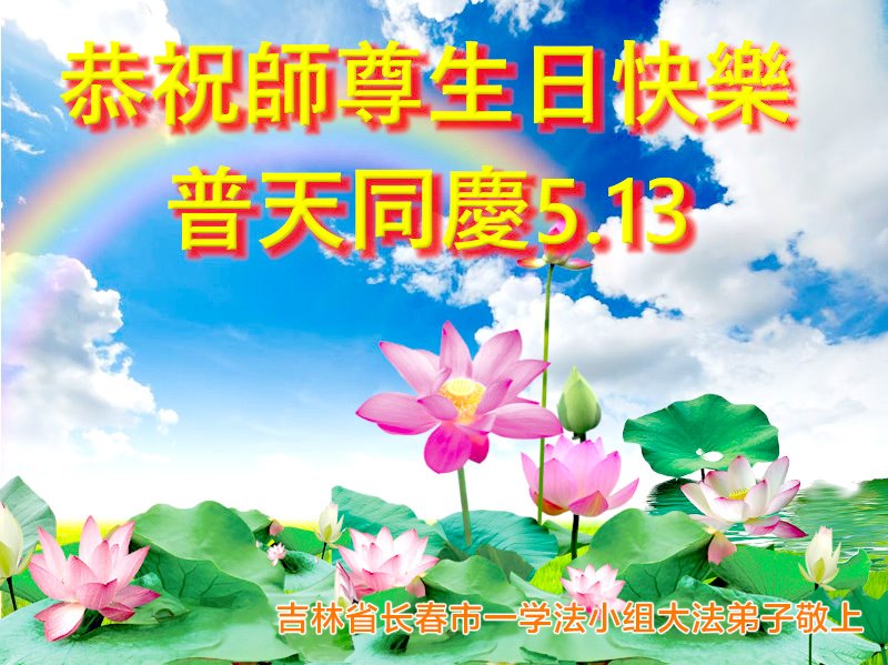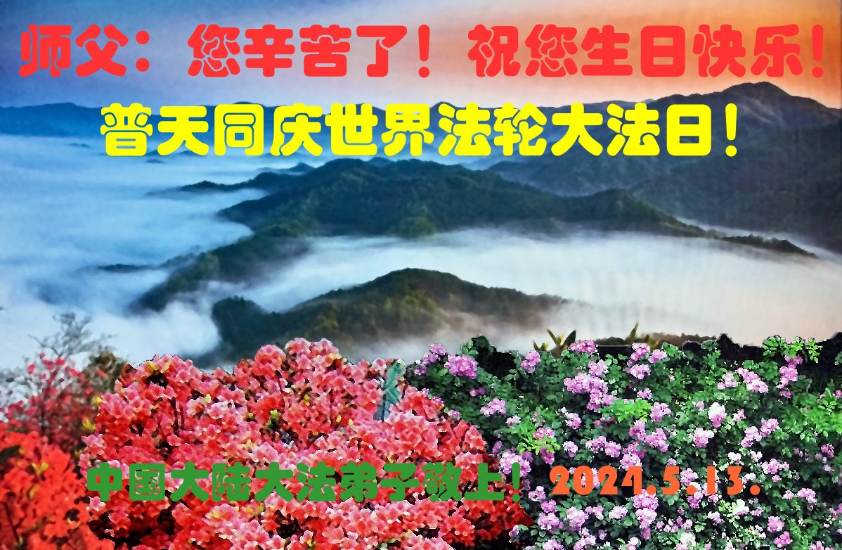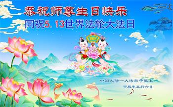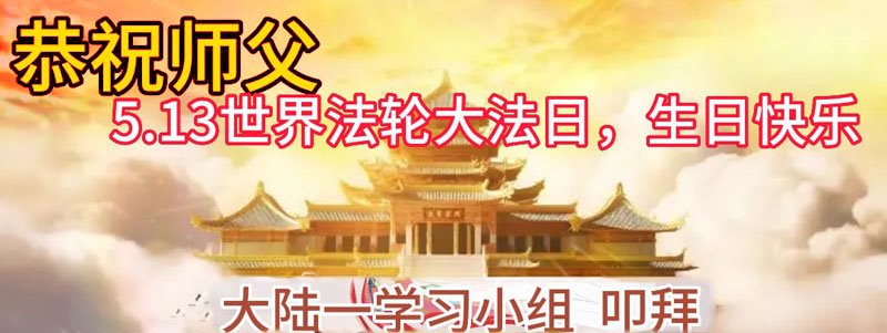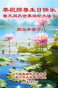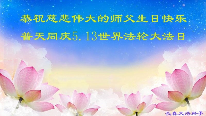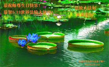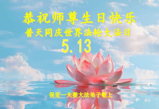 今年的五∙一三是第二十五届世界法轮大法日暨师尊华诞!弟子衷心恭祝师尊生日快乐!普天同祝同颂世界法轮大法日!感恩师尊慈悲普度!感恩师尊传法三十二周年,您为弟子及穹宇众生得救呕心沥血的操劳!弟子们唯有多学法修好自己,做好三件事,不辜负师尊的慈悲救度!