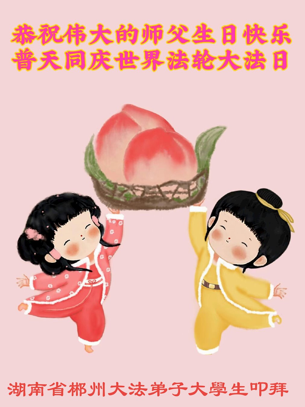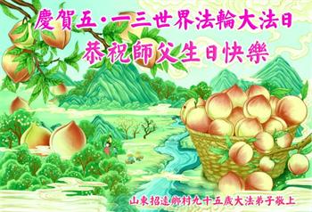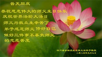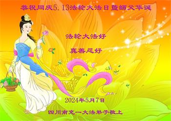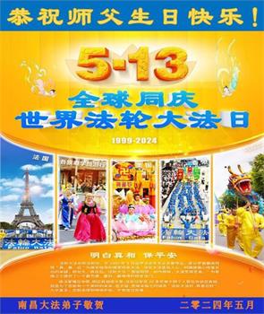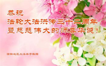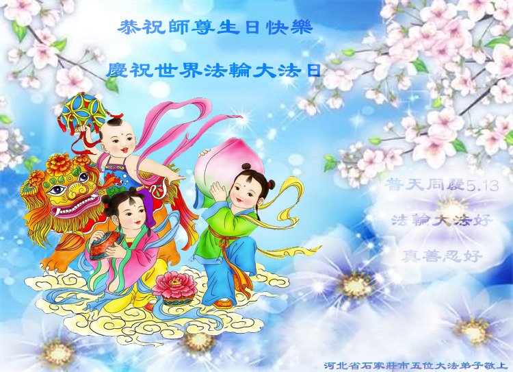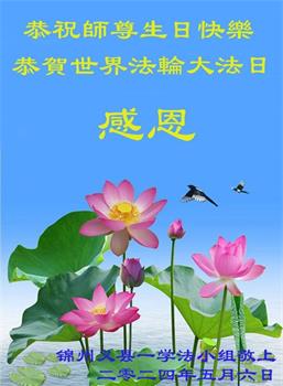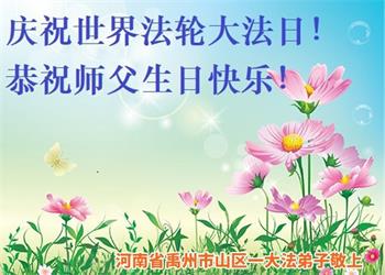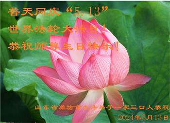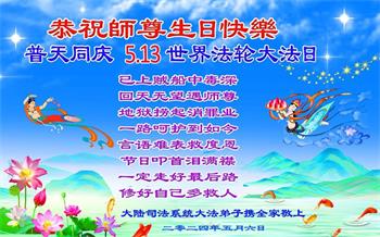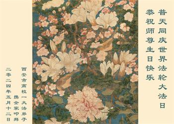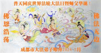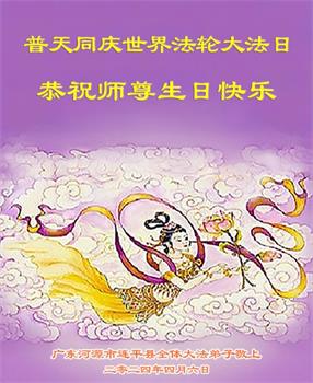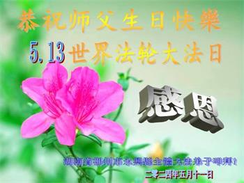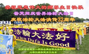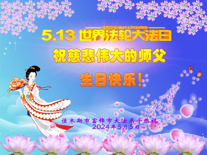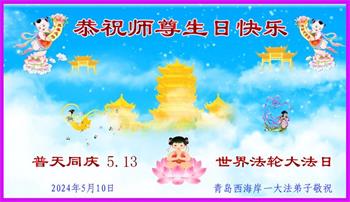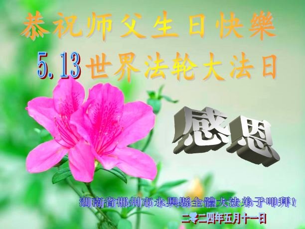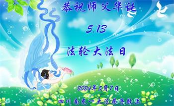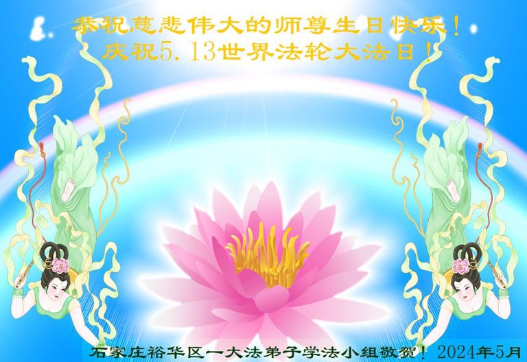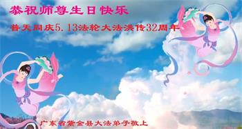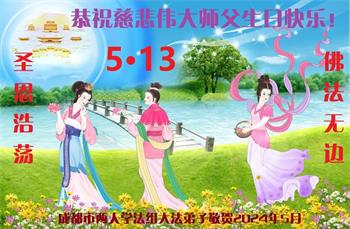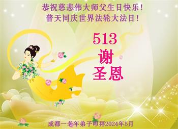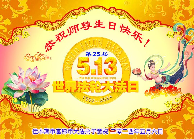 今年的五∙一三是第二十五届世界法轮大法日暨师尊华诞!弟子衷心恭祝师尊生日快乐!普天同祝同颂世界法轮大法日!感恩师尊慈悲普度!感恩师尊传法三十二周年,您为弟子及穹宇众生得救呕心沥血的操劳!弟子们唯有多学法修好自己,做好三件事,不辜负师尊的慈悲救度!