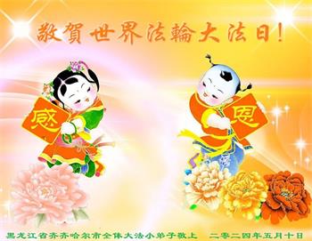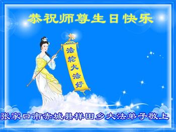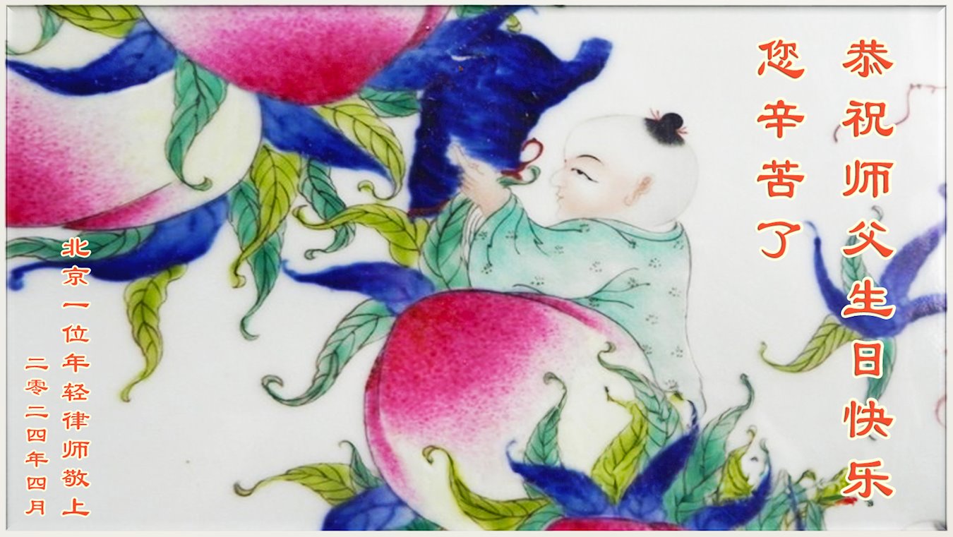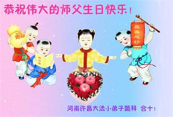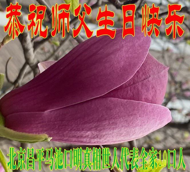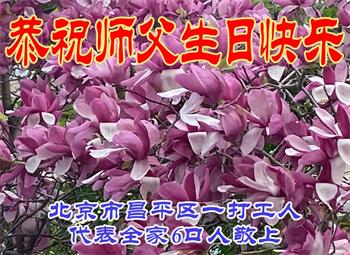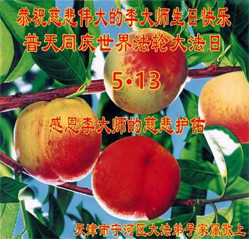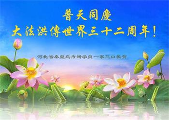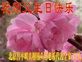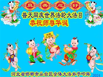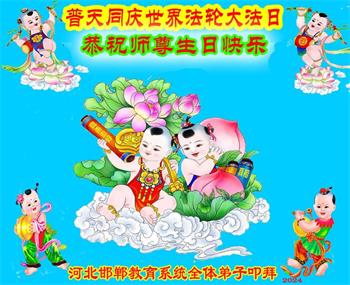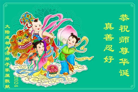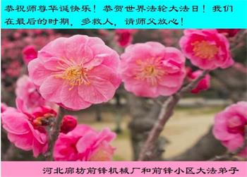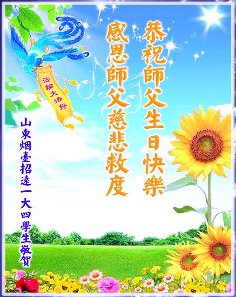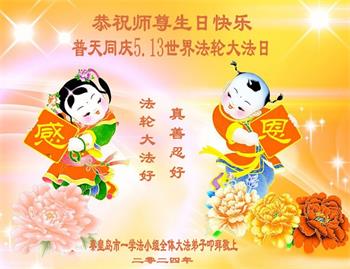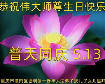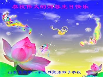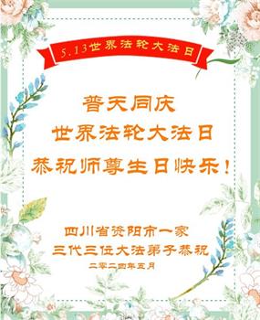 我奶奶爷爷都修炼法轮功。我从小目睹了大法弟子的高尚品德,处处为别人着想的高风亮节。同时也看到了邪党对大法弟子的无端迫害。那时邪党人员经常到家里骚扰,绑架我奶奶,我吓得抱着奶奶的腿大哭,幼小的心灵受到了极大的伤害,从此我恨透了某某党。所以我从上学开始,坚决不申请加入邪党的党、团组织。我虽然还没有走入修炼,但只要遇到困难,我就诚念“法轮大法好,真善忍好”九字真言,就能得到师父的保护,困难很快就迎刃而解。感恩师父的慈悲救度!恭祝师父生日快乐!