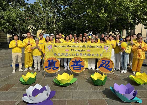 五月十一日、十二日,为庆祝世界法轮大法日和法轮功创始人李洪志师父华诞,意大利各地的法轮功学员在多个城市举行了庆祝活动。