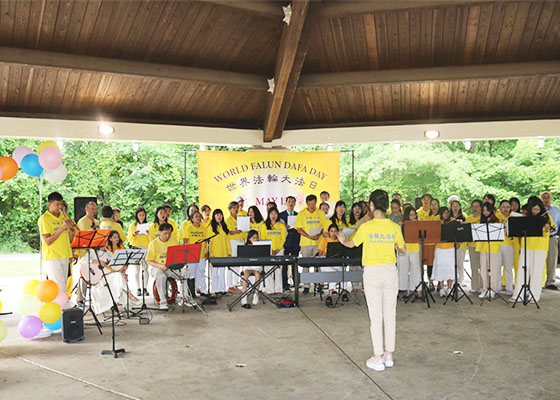 庆祝世界法轮大法日 北卡学员集体炼功弘法