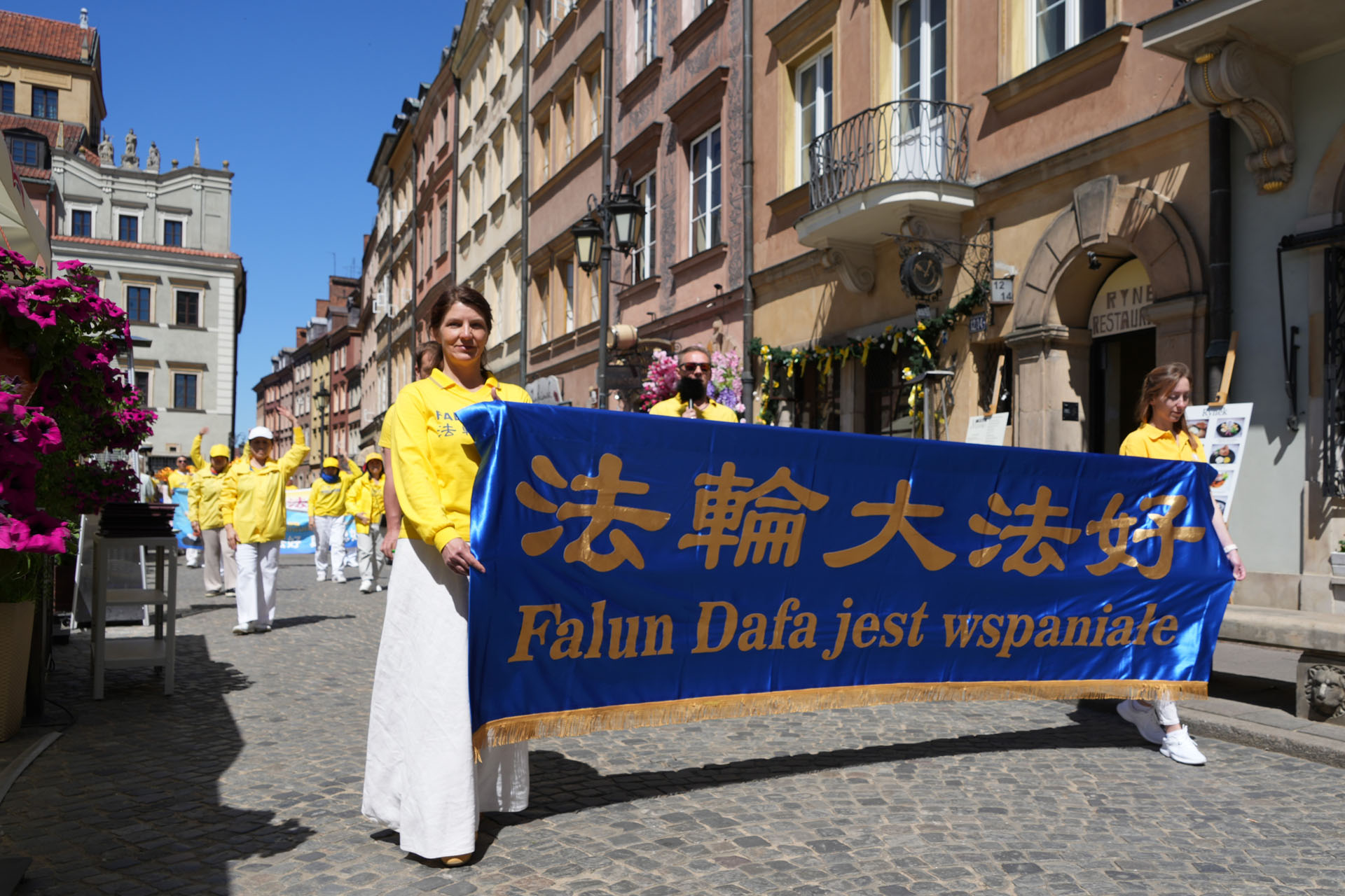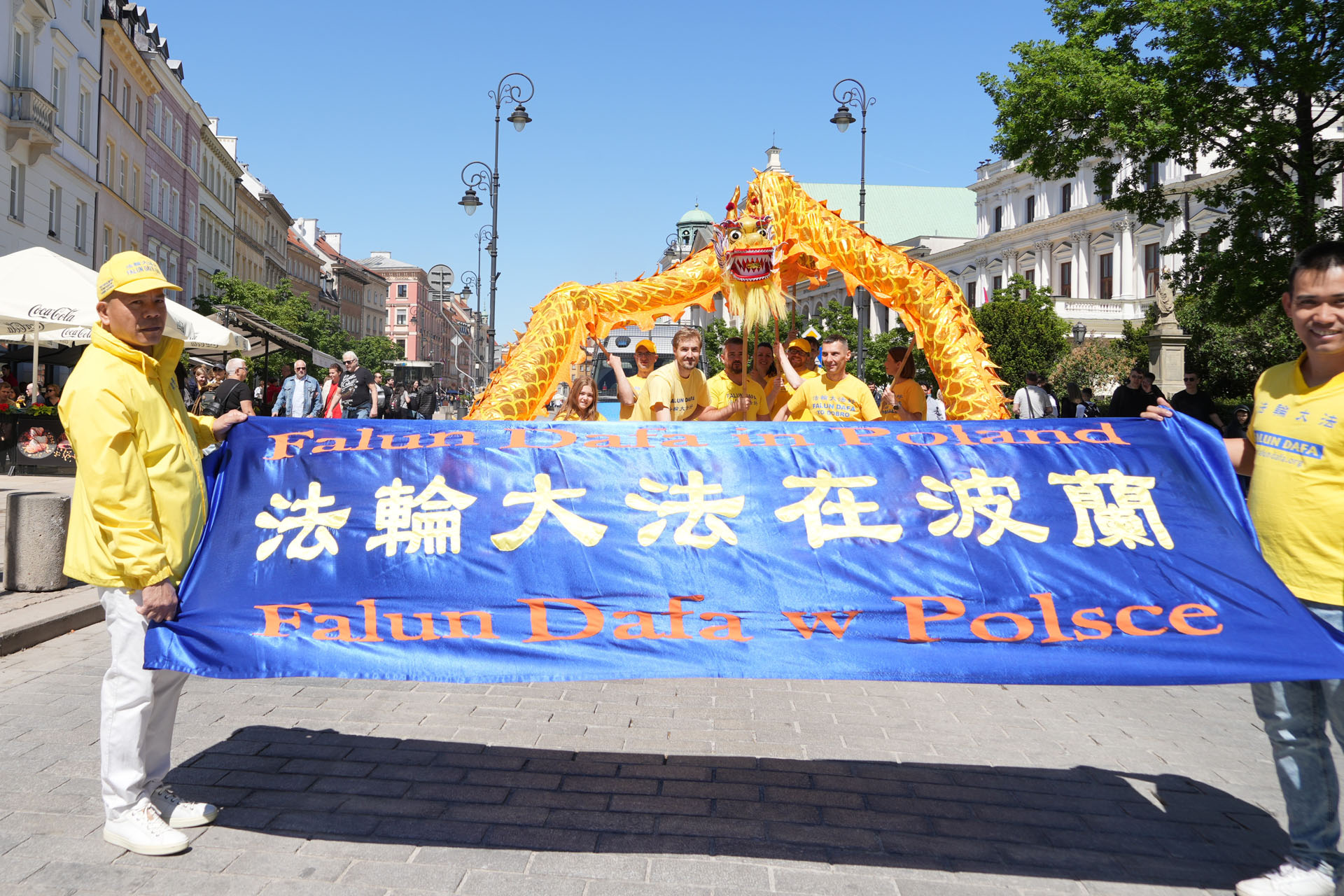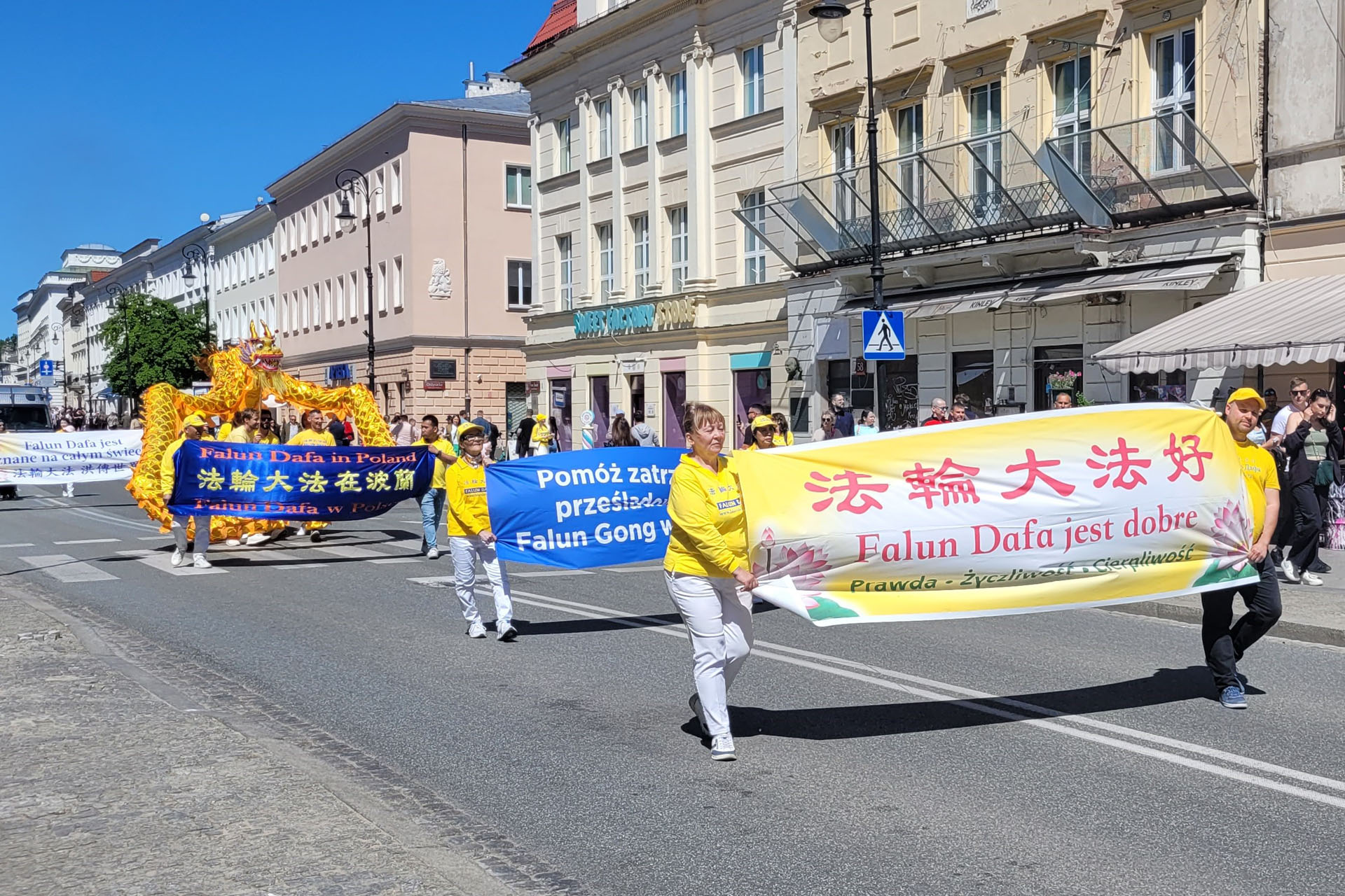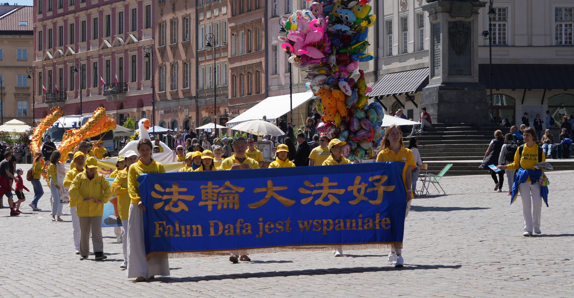 【明慧网二零二四年五月十六日】欢庆“五·一三”世界法轮大法日与师尊华诞,波兰部分法轮功学员于五月十二日在华沙繁华街区举办游行活动,庆祝法轮大法弘传世界32周年。