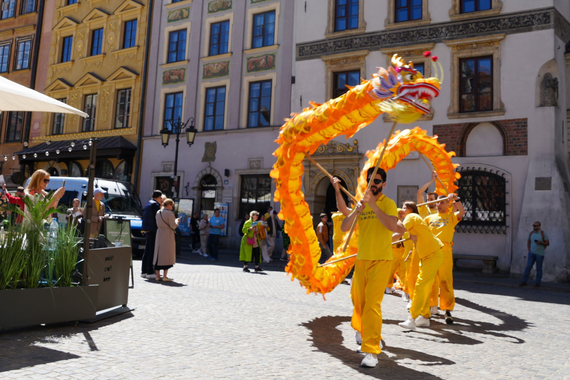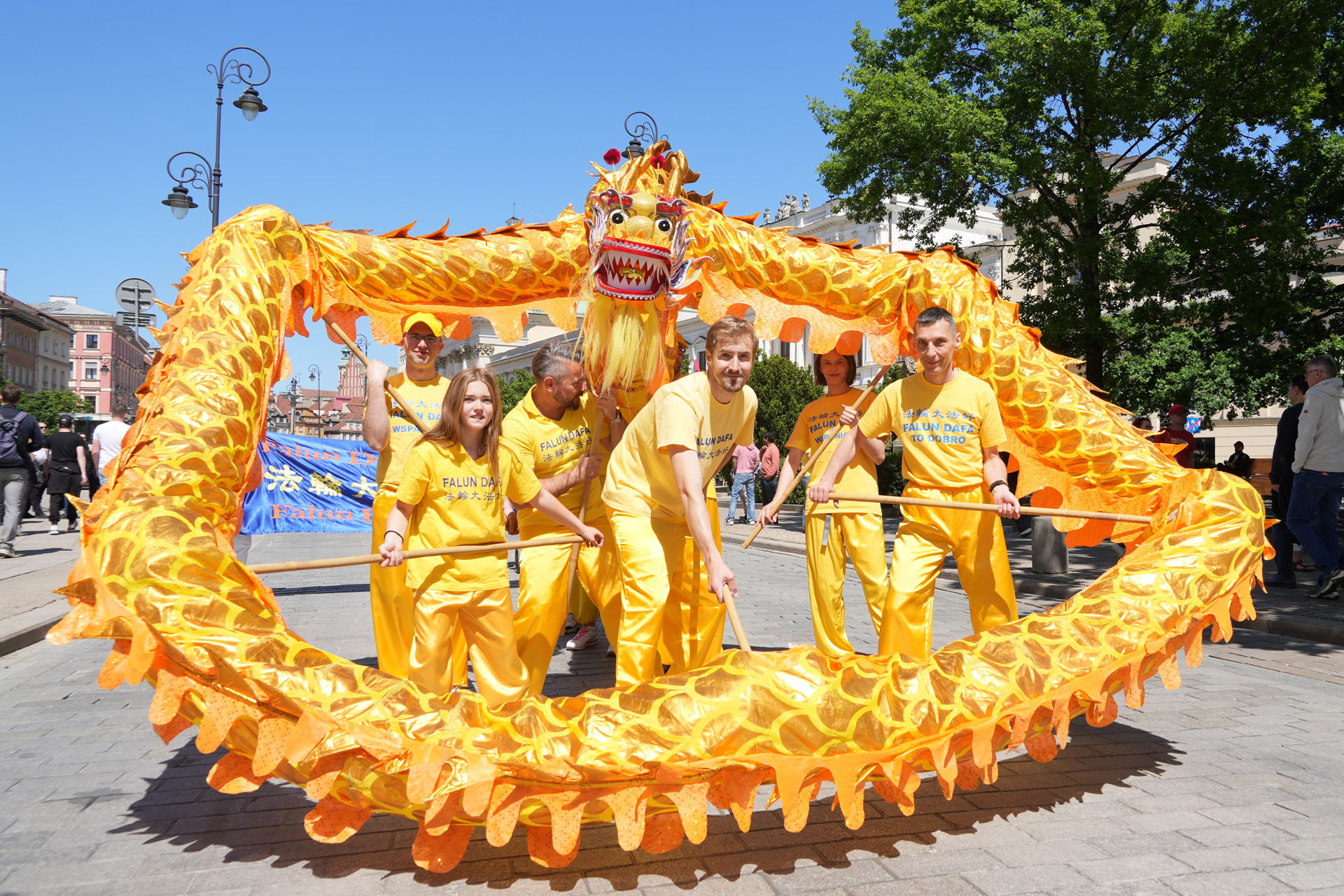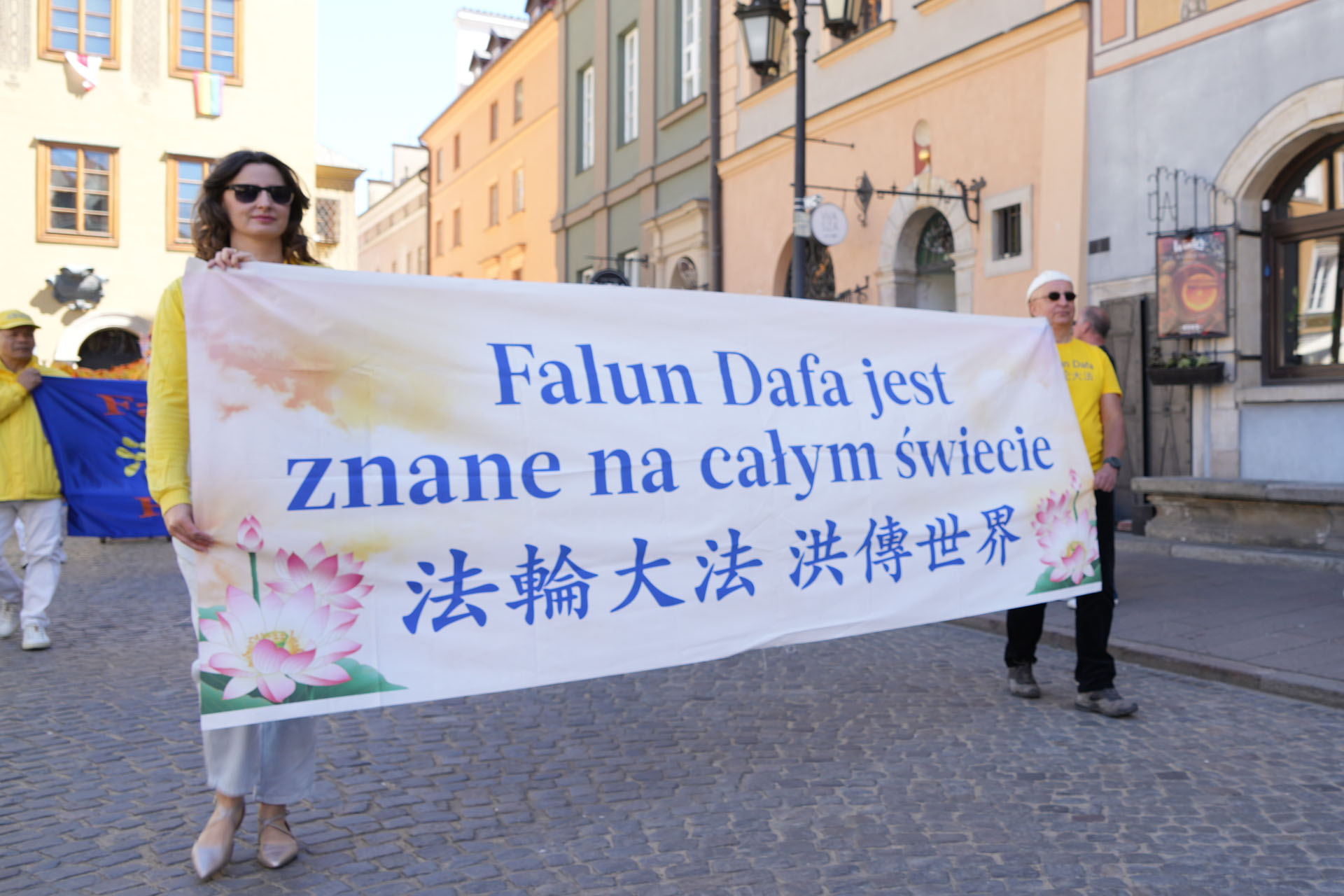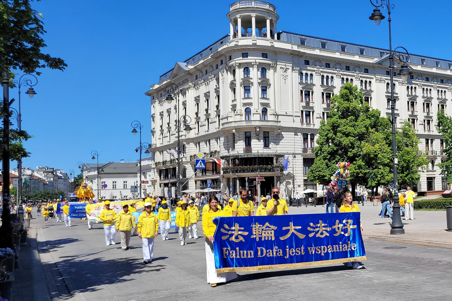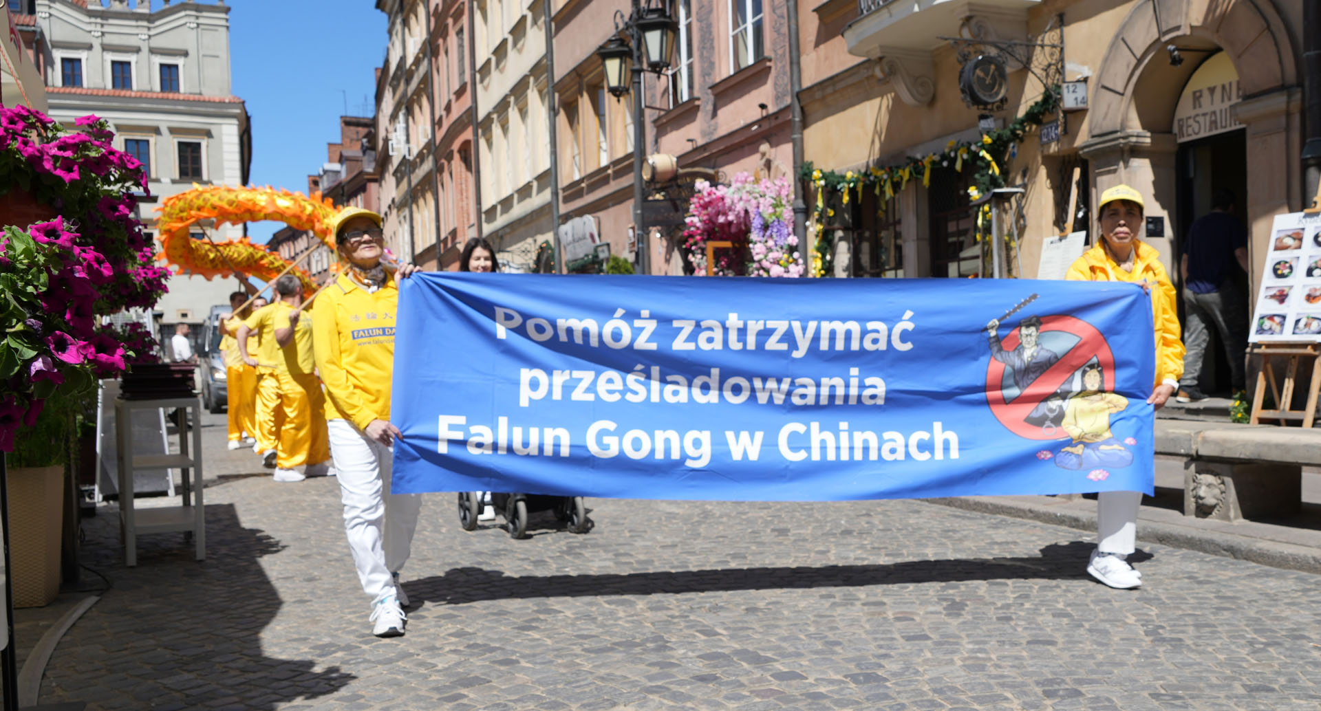 【明慧网二零二四年五月十六日】欢庆“五·一三”世界法轮大法日与师尊华诞,波兰部分法轮功学员于五月十二日在华沙繁华街区举办游行活动,庆祝法轮大法弘传世界32周年。