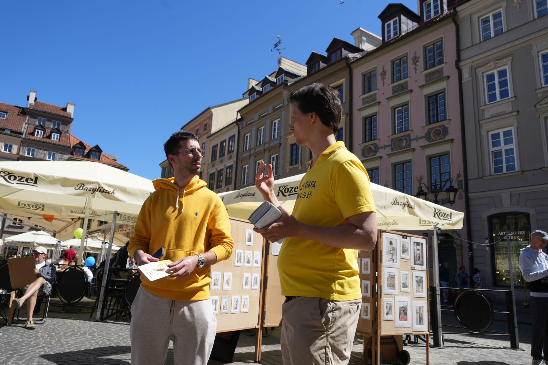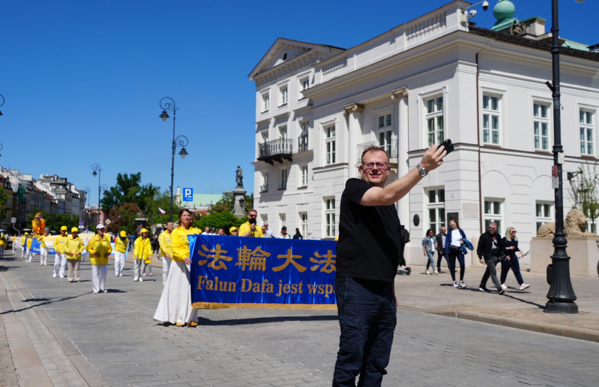 华沙居民Artur Siemiński先生是自营公司的老板,在华沙古城兴致勃勃的观看了法轮功的游行,当听到法轮功学员介绍修炼者都是以真善忍为原则时,更感到游行队伍是那么赏心悦目,可听到中共对平和善良的修炼人残酷迫害后,心中感到十分吃惊,“这不是现代希特勒吗?在21世纪怎么能出现这种事情,更可怕的这是政府行为,而所有只关心自己的福祉和金钱的全球主义统治者竟然都视而不见,太可悲了”。