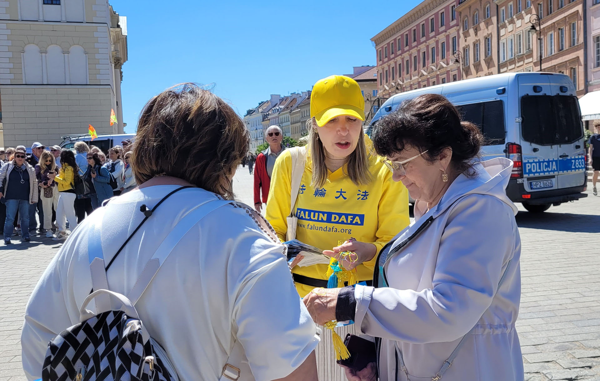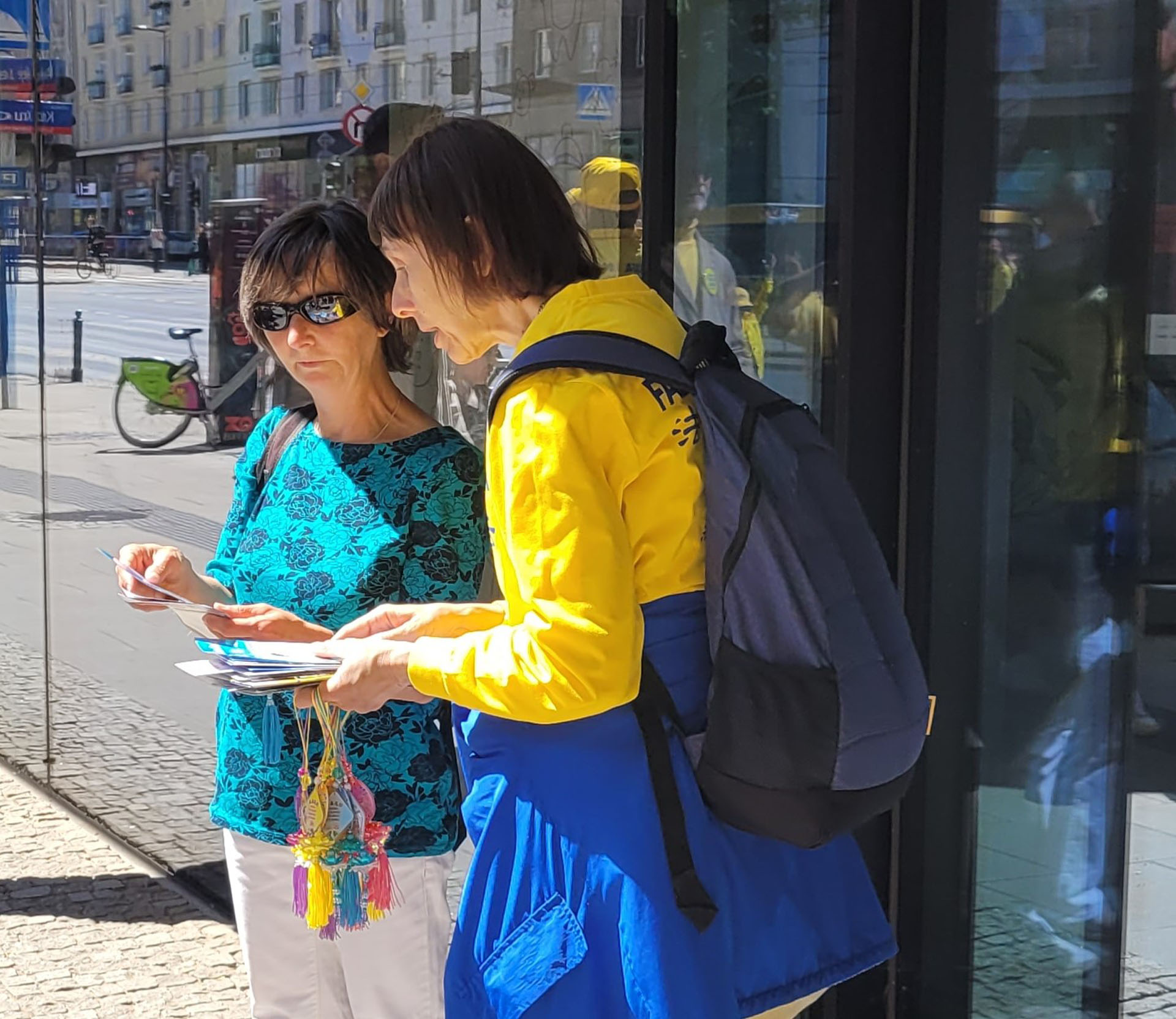 Mariola Klimczak 女士是一位教师,丈夫是一位波兰南方城市的政府官员,在华沙古城她们看见了法轮功的游行,也听到了扩音器中传出对法轮功的介绍,夫妻俩震惊于中共对法轮功的镇压及活摘器官的说:“这是可怕而残酷的事情。 我们坚决反对”。Marola丈夫接着说“这样的事情根本就不应该发生在世界上,是中国政府在做各种不符合人权的事情,必须要受到谴责”。