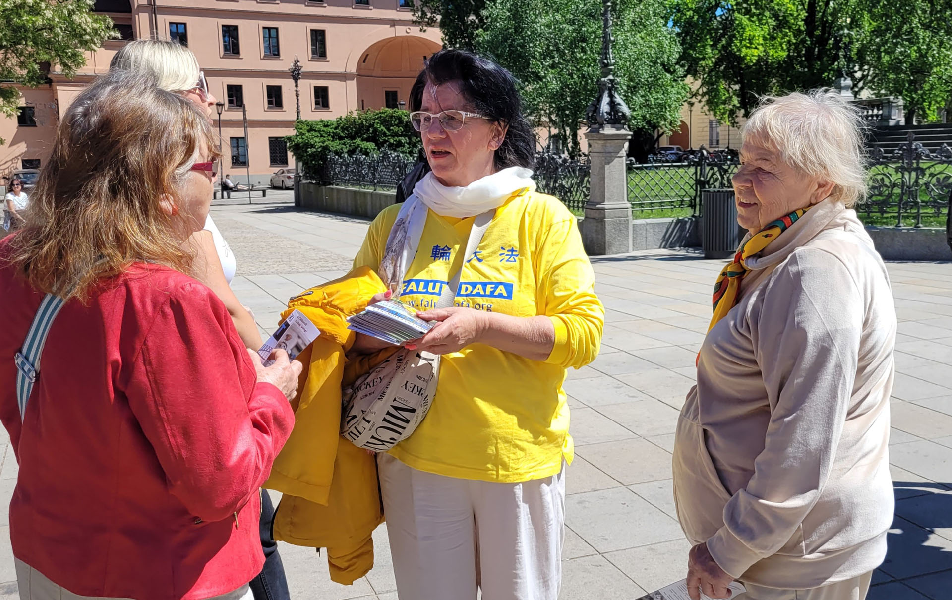 听到对话的中国法轮功学员告诉她们,“法轮功已经弘传世界一百多个国家,很多老外都在学法轮功,不仅用自己国家语言学,还在努力学中文,用中文阅读法轮功主要著作,用中文学中华传统文化,不要听信中共谎言,请上网多了解法轮功真相,这是佛法,是人类最后的希望。”两位女孩不停的点头,一再说:“谢谢,谢谢告诉我们这么多,一定上网了解真相。”