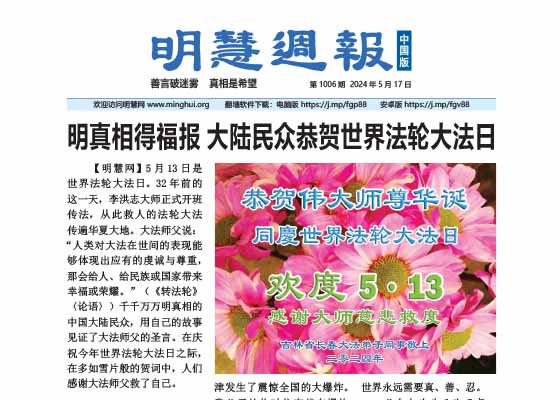 二零二四年五月十三日,是第二十五届世界法轮大法日暨大法弘传世间三十二周年、法轮功创始人李洪志师父华诞。