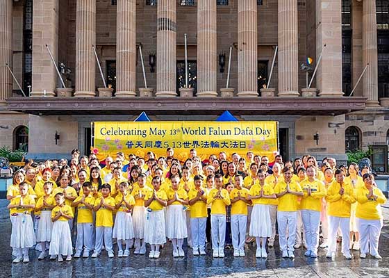 昆士兰法轮功学员五月十二日在布里斯班市中心乔治王广场,以欢快喜庆的歌舞形式庆祝世界法轮大法日,诚挚恭祝慈悲、伟大的师尊生日快乐。