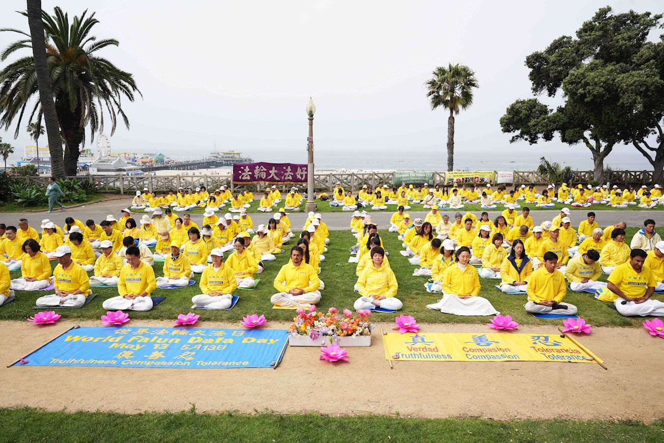 【明慧网二零二四年五月十八日】二零二四年五月十二日,美国洛杉矶法轮功学员在旅游胜地圣莫妮卡(Santa Monica)海滩举行盛大欢庆活动。今年的五月十三日是法轮大法弘传三十二周年纪念日,也是第二十五届世界法轮大法日暨法轮功创始人李洪志大师华诞。