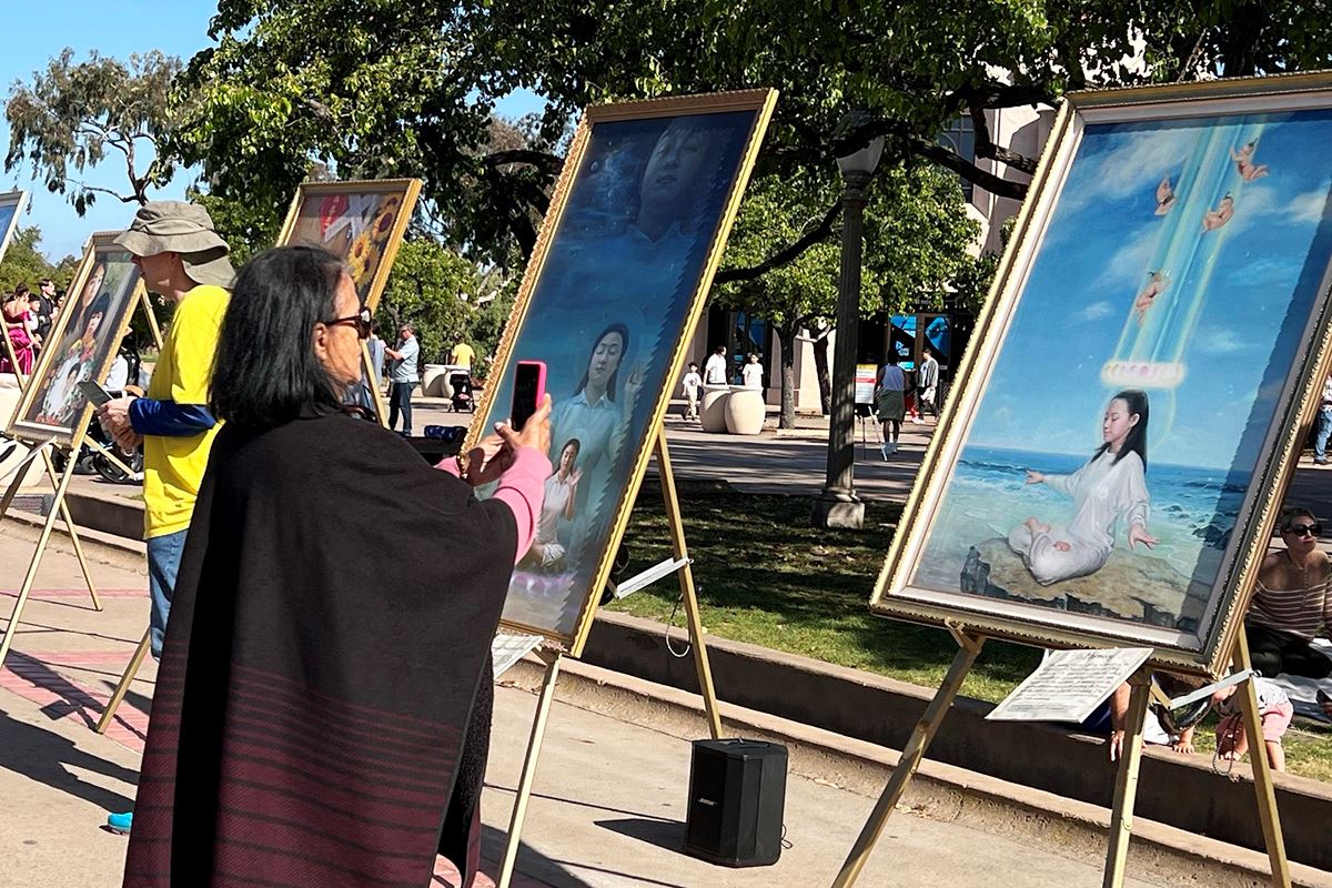 她接着表示,画作上,修炼者“面部表情充满了平和”,令人感到非常好,非常感人。她要把画拍下来,和朋友分享。