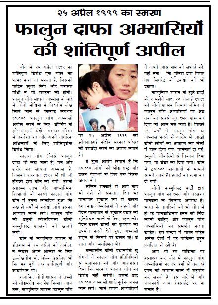 其中一些媒体过去也曾报道有关法轮大法因其修身养性、祛病健身的益处而广受赞誉;以及修炼法轮大法的印度名人的修炼故事。在四·二五和平上访二十五周年纪念日的前一周,印度多家媒体报道了这一历史性事件。这些媒体包括如下报纸和新闻门户网站。