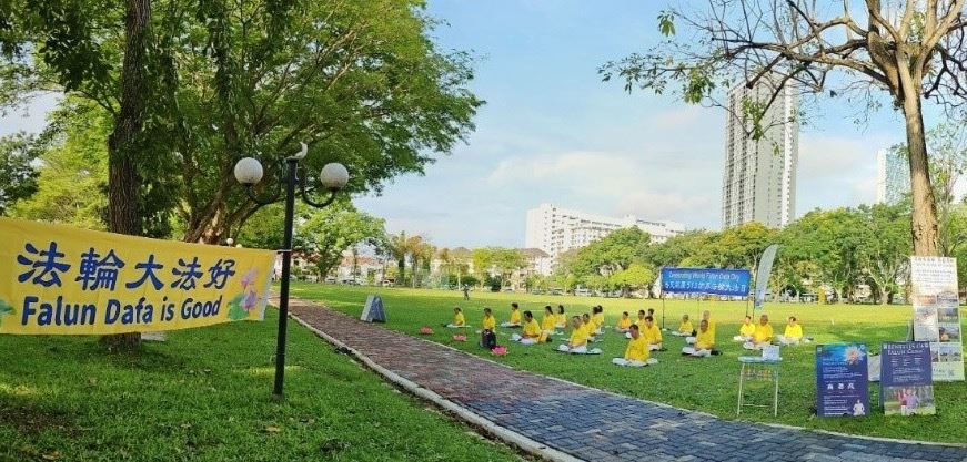 来自槟城州和吉打州的部分法轮功学员在祥和的炼功音乐中,向民众展示了优美的法轮功五套功法,展现法轮大法的美好,吸引了许多民众驻足观看。同时,学员也向路人分发法轮功简介资料,希望把修炼大法的美好分享和传递给人们。