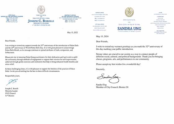 五月十三日,是第二十五届“世界法轮大法日”暨法轮大法弘传世界三十二周年纪念日,更是法轮功创始人李洪志大师的华诞。纽约市议会政要发来褒奖贺信。