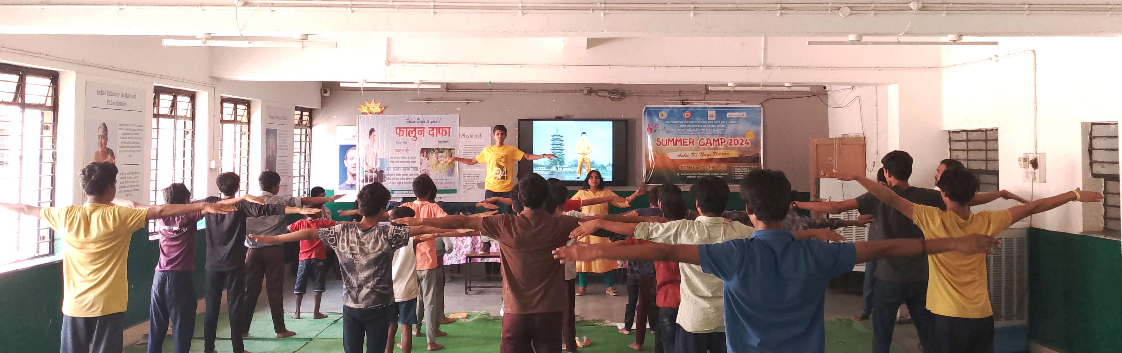 那格浦尔男生寄宿学校是一所政府资助机构,旨在为贫困儿童和孤儿提供经济、住宿和教育援助。此次介绍会是该校夏令营的活动内容之一。在一个小时的活动中,四十多位学生了解到什么是法轮功,并现场学炼功法动作。