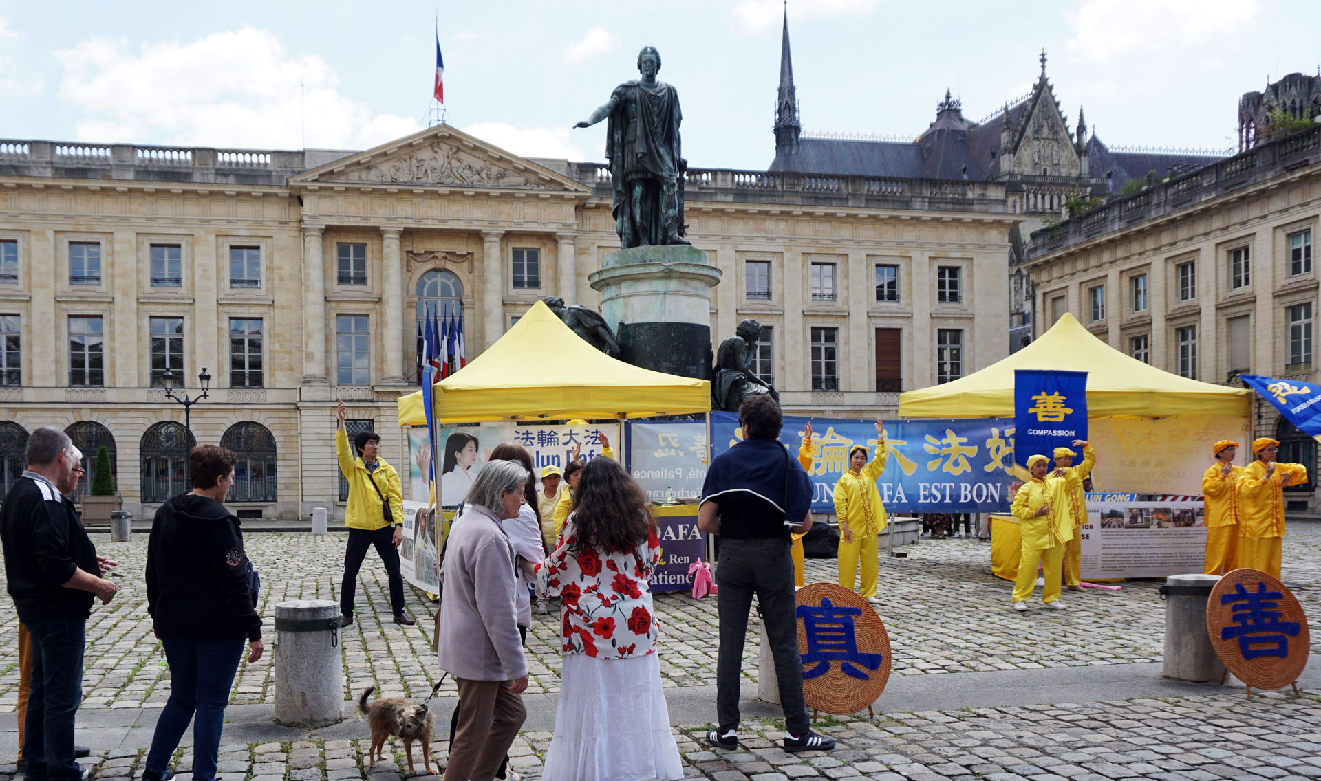 当天的活动在北部少有的阳光明媚的天气中进行着,法轮大法祥和的能量场;学员伴随着优美的炼功音乐展示的法轮功功法;法轮功学员真诚和用心的讲真相;这一切都给兰斯的民众留下了深刻的印象,法轮大法已经开始溶入人们的生活。