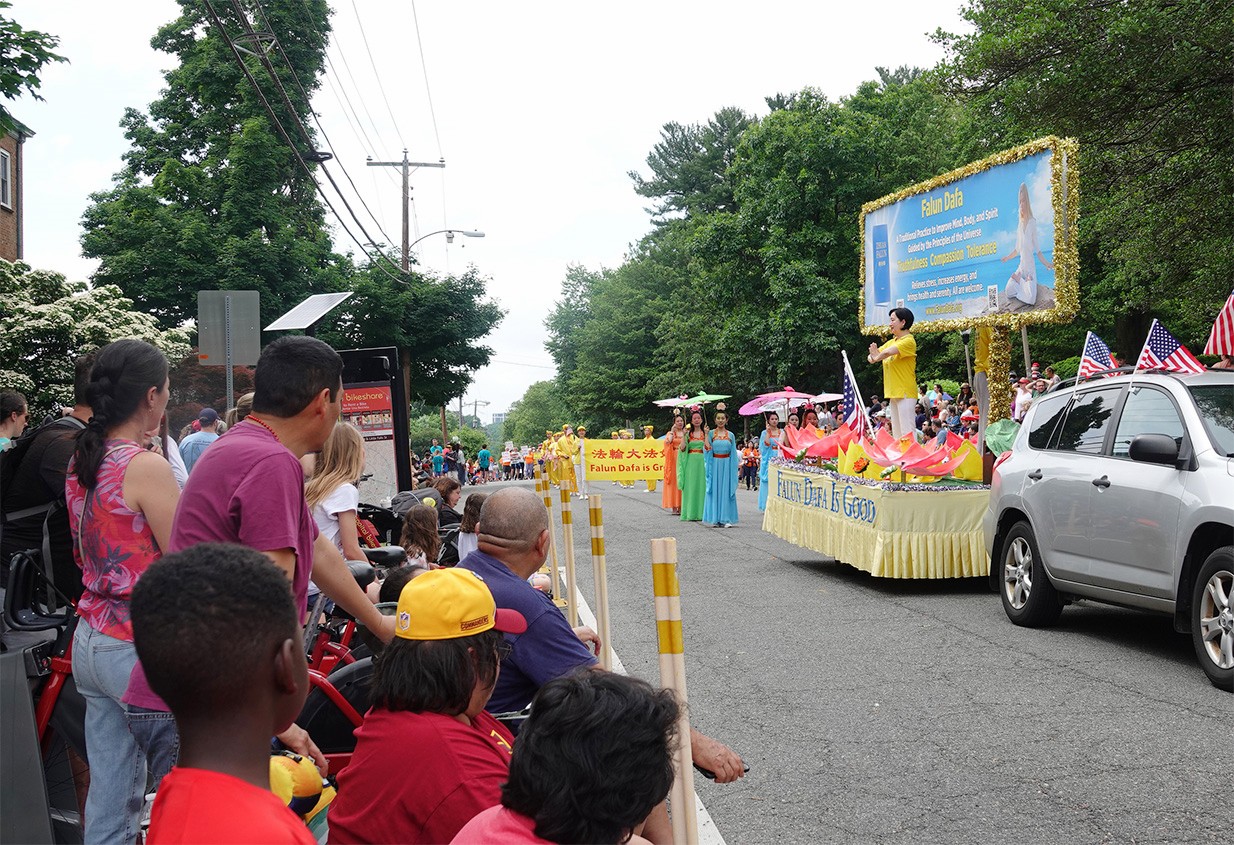 【明慧网二零二四年五月二十九日】(明慧记者李静菲美国弗吉尼亚州报道)二零二四年五月二十七日下午,大华府地区部分法轮功学员再次参加了华盛顿近郊弗吉尼亚州瀑布教堂市(Falls Church)的阵亡将士纪念日游行。观众说,感受到了法轮功学员积极向上,以及他们带来的能量。当看到“世界需要真善忍”的横幅时,观众说:“哪里都需要。”