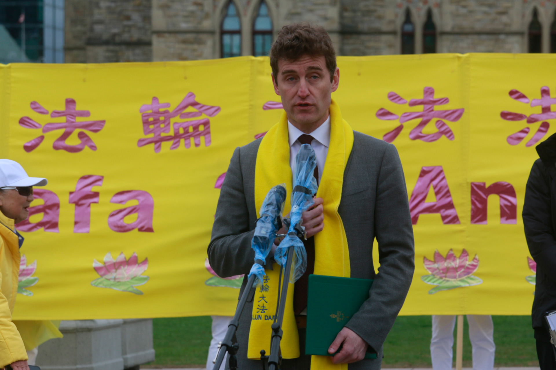 国会法轮功之友联合主席、保守党国际发展影子部长加内特·吉尼斯(Garnett Genuis)在五月八日的庆典上对法轮功学员坚持反迫害表示深深的感谢,他说:“你们守护着中国传统文化的精髓,这是共产党企图扭曲和摧毁的,而你们却致力于保护这种传统文化,并为人权和正义发声。实际上,你们也是在为法轮功的核心理念——真、善、忍而努力。”