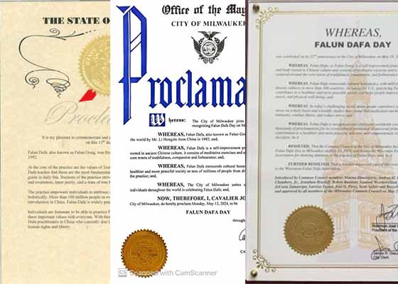 今年是大法洪传32周年,普天同庆!威斯康星州的政要也纷纷加入,感恩大法为社区带来的正能量,褒奖升旗,共襄盛举。
