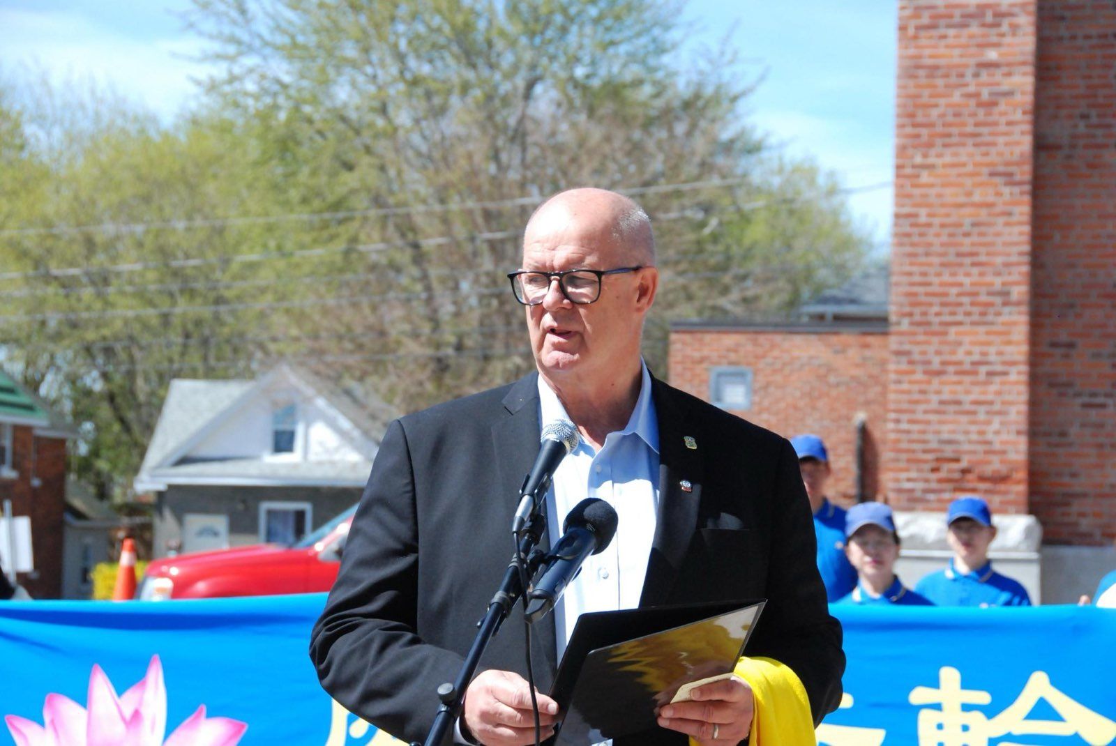 ![]() 图6:奥里利亚市(Orillia)市长唐·麦克艾萨克(Don McIsaac)宣读贺信。 |