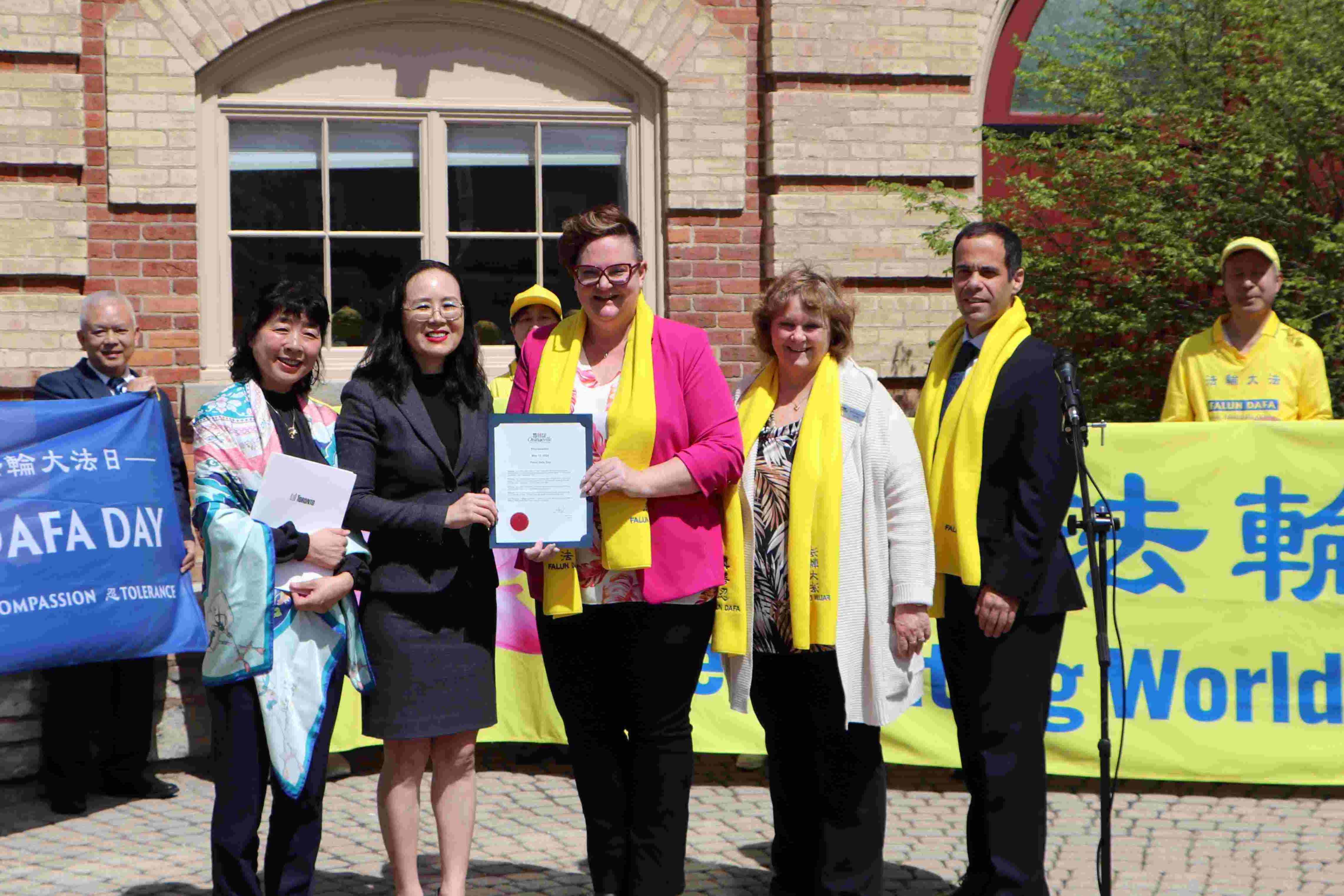 法轮大法超越文化和种族的界限,为建立一个更加和平、宽容和富有同情心的社会作出了贡献,鉴于加拿大各地的法轮大法修炼者于五月十三日庆祝法轮大法日,并且今年为第三十二周年,因此现在,由我,丽莎·波斯特代表市议会,特此宣布二零二四年五月十三日为奥兰治维尔镇法轮大法日。